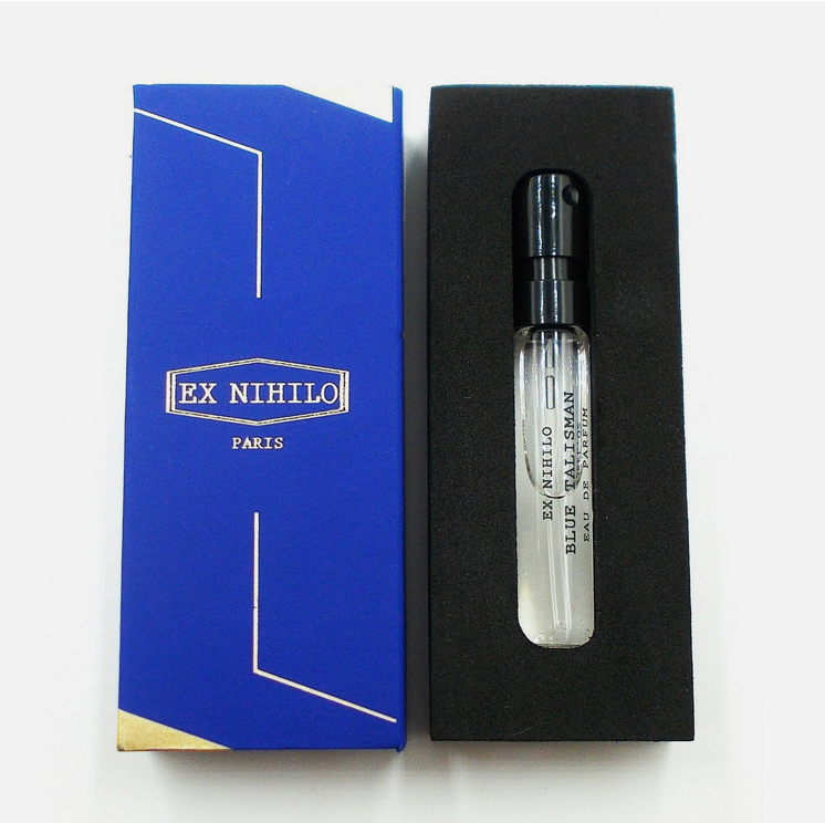 Blue Talisman Ex Nihilo Eau De Parfum 2ml Travel Size A cutting-edge fragrance symbol of an infinite spiritual energy expressed by the subtle freshness of Ginger soften by abstract Musky and Ambery notes. All our products are 100% authentic from our distributor and are stored in a climate controlled, pet-free, smoke-free environment. Please ask questions before purchasing as we do not accept returns for makeup or personal hygiene products. Please check back often as our products are always changing.