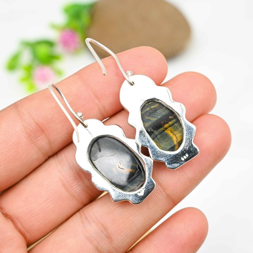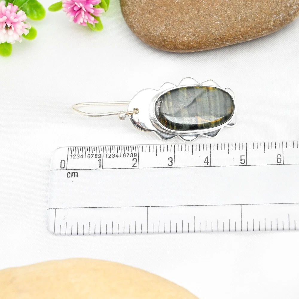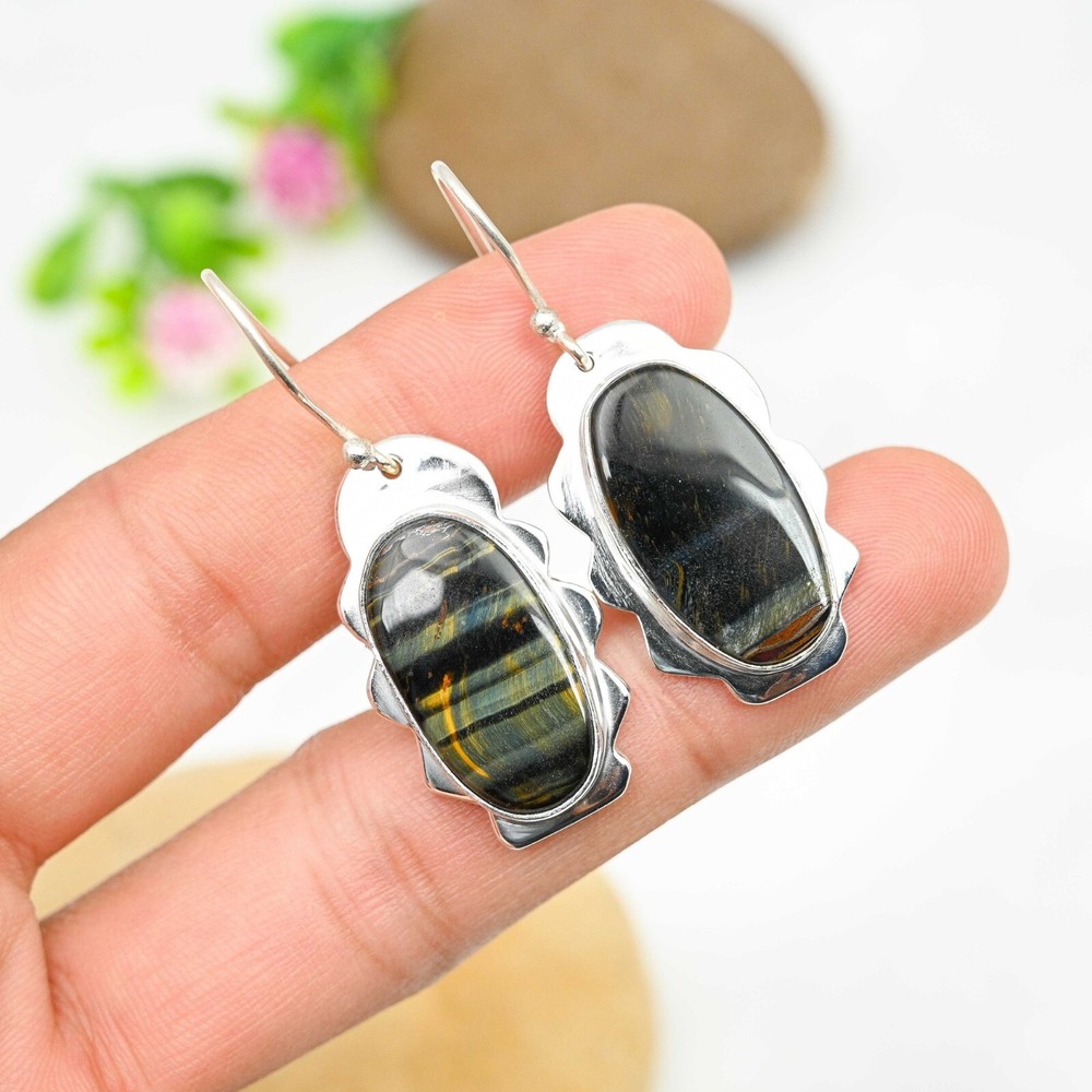 Metal Purity:925Material:Stone, GemstoneTheme:Beauty, Bohemian, Ethnic, Halloween, LoveMain Stone Shape:Same As PictureMain Stone Creation:NaturalEar Area:LobeStyle:Dangle/DropBase Metal:Sterling SilverMain Stone Treatment:Not EnhancedItem Length:1.85'Secondary Stone:Blue Tiger EyeColor:SilverOccasion:Anniversary, Birthday, Christmas, Engagement, Father's Day, Mother's Day, Valentine's Day, WeddingNumber of Gemstones:2Country/Region of Manufacture:IndiaType:EarringsMain Stone:Blue Tiger EyeClosure:HookBrand:HandmadeShape:Same As PictureMetal:Sterling SilverDiamond Clarity Grade:N/ASeller Warranty:YesCollection:HandmadeCut Grade:ExcellentDiamond Color Grade:N/ACountry of Origin:IndiaTotal Carat Weight:10 carat and aboveColored Diamond Intensity:N/AMain Stone Color:BlueCertification:N/ANumber of Diamonds:N/ASetting Style:Prong