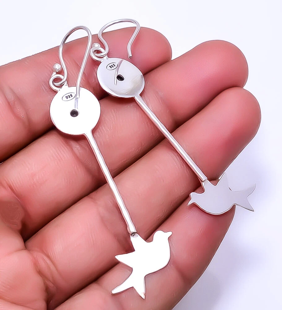 Blue Topaz 925 Sterling Silver Flying Bird Earring 2.89" E_9272_104_32