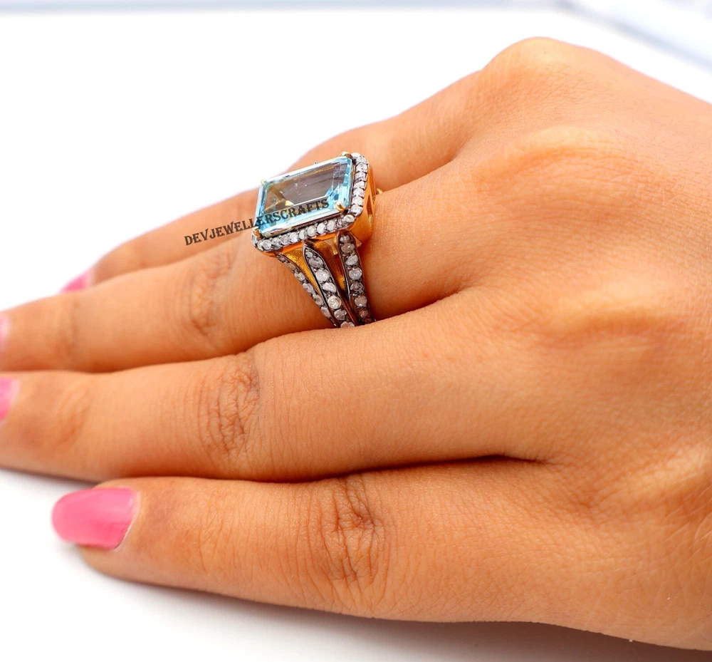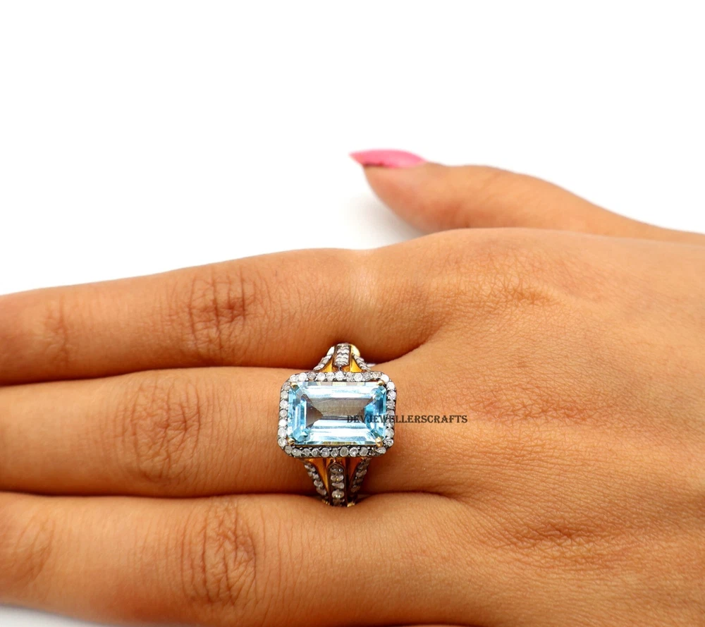 Signed: Yes Setting Style: Prong Type: Ring Wholesale: Yes Country/Region of Manufacture: India Diamond Clarity Grade: Included (I1) Metal: Sterling Silver Occasion: Anniversary, Birthday, Engagement, Wedding Sizable: Yes Main Stone Creation: Natural Customized: Yes Gemstone Clarity Grade: Eye Clean Secondary Stone: Pave Diamond Antique: Yes Ring Size: All Size Available Metal Purity: 925 Base Metal: Silver Personalize: Yes Main Stone: Blue Topaz Color: Gold Main Stone Treatment: Not Enhanced Cut Grade: Excellent Shape: Square Seller Warranty: Yes Main Stone Color: Blue Handmade: Yes Era: Victorian (1837-1901) Seller Notes: “Blue Topaz 925 Sterling Silver Pave Diamond Statement Ring Victorian Jewelry.” Brand: Victorian Main Stone Shape: Emerald Diamond Color Grade: I Material: Stone Vintage: Yes Theme: Beauty, Fashion & Costumes, Love, Luck Country of Origin: India Colored Diamond Intensity: Fancy