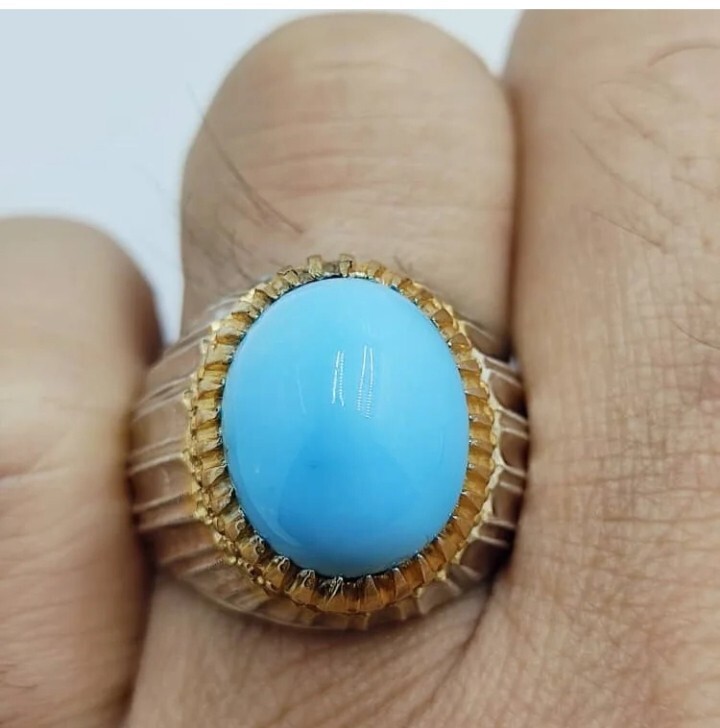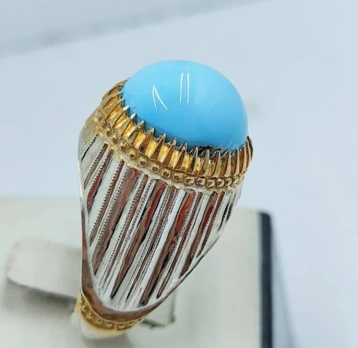 Blue Turquoise Sterling Silver Gemstone Fine Rings Ring 925 Metal Type: Natural ,Unheated Untreated Metal : Silver925 Stone Colour: Blue Feroza Stone Weight: 3.0Grm Stone Shape: Oval Treatment: No Gemstone: Turquoise| Feroza Ring sides area is gold Plated colour ITEM TYPE : Handmade Ring will be shipped via Fedex priority Service Return Policy Buyer pay Return Shipping Label Charges