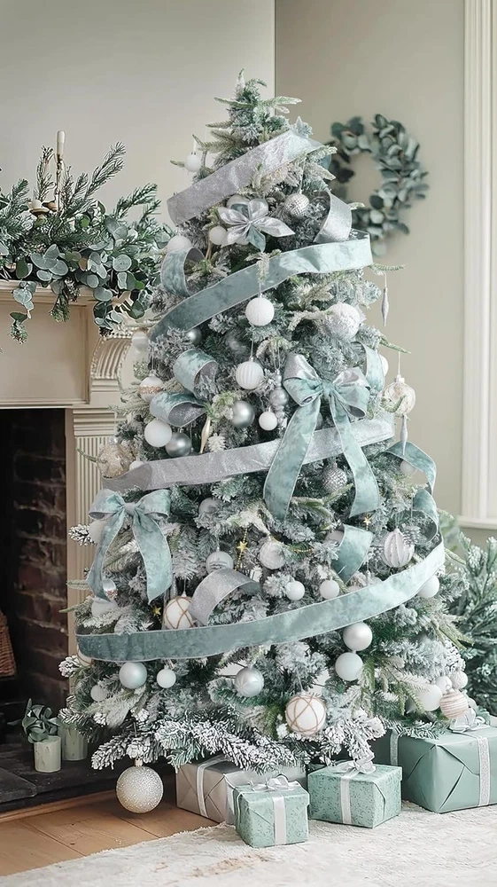 $ 11.25Christmas Ribbon 1.5inx30ft Nylon , Light Blue Xmas Tree New Christmas Wired