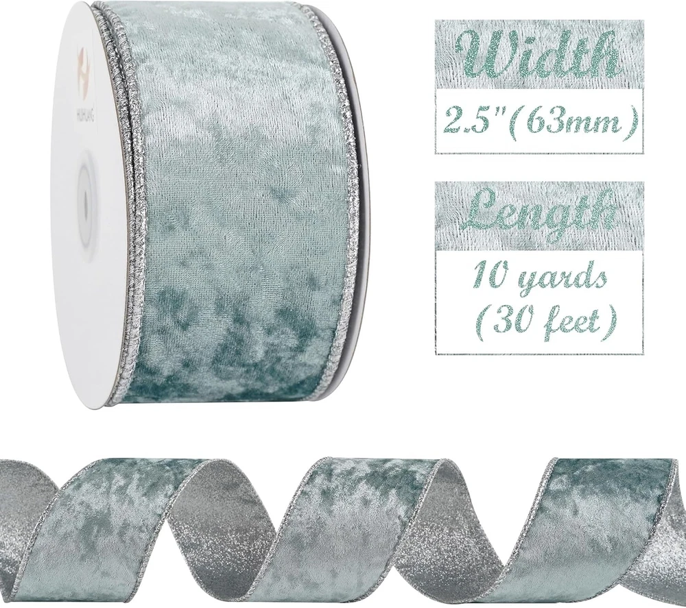 Blue Velvet Wired Ribbon 2.5 inch Dusty Blue Velvet with Glitter Silver Christmas Ribbon for Tree Decorations, Bows, Wreaths, Garlands, Home Decor- Continuous 10 Yards Blue Velvet Wired Ribbon 2.5 inch Dusty Blue Velvet with Glitter Silver Christmas Ribbon for Tree Decorations, Bows, Wreaths, Garlands, Home Decor- Continuous 10 Yards FREE AND FAST SHIPPING! About this item Color: Velvet wired ribbon crafted from smooth and luxury dusty blue velvet texture with glitter silver backing, it can be used to wrap around your Christmas tree or staircase ballard or as an elegant finishing touch to your decor Size: Ribbon measures 2-1/2" wide and 10 yards(30 feet ) continuous long each roll, good for a elegant Christmas decorative crafting, crafting bows, adorning wreaths, and any other decorating purposes Material: Made of quality thick velvet with good softness, smooth, luxurious surface, delicate metallic sewing trim with the wire on both side makes it easy to create gorgeous bows and any craft project Application: Wired ribbon are great for decorating your Christmas tree, wreaths, garlands, mantles, staircases, tree top bows, gift wrapping, swags, home decor. Good for a elegant themed Christmas, classic-themed holiday decor and more Colors maybe slightly different due to the velet material and photographic lighting or your monitor setting. Our ribbons are available in a wide array of colors, size and types allowing them to match or complement any theme or color scheme Product We offer a 30-Day Return Policy on items which you are not completely satisfied with. You have the option for a full-refund or an exchange of the item. No returns are available on items shipped outside of the US . Shipping We offer Free Shipping to the US and ship within 2 business days of payment, usually sooner. We use UPS express shipping. That's why your products are usually delivered within 3 days . Contact We try our very best to make sure every customer is completely satisfied. If there's a problem , message us! We're happy to help. 24/7 live chat available.
