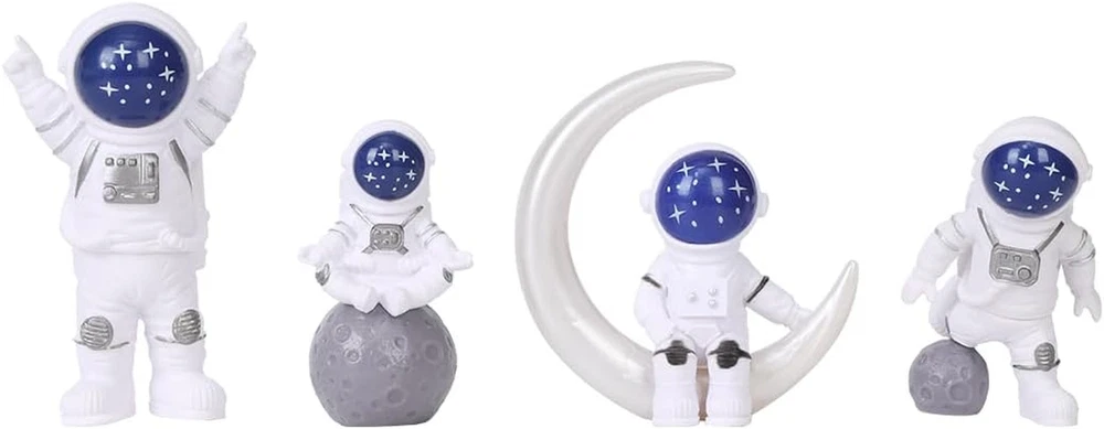 Product Size:Hands lift astronaut statue is high 4.01*width 2.36inches/10.2*6cm,sitting on the planet astronaut statue is high 3.14* width 1.88inches/8*4.8cm,like kick the planet astronaut statue is high 3.14*width1.57inches/8*4cm,sitting on the moon astronaut statue is high 3.54*width 3.34inches/8.8*8.5cm. Durable Material: Crafted from premuim quality resin, our astronaut statues are sturdy and not easily broken, ensuring long-lasting use without easily breaking. Versatile Decorations: Whether or not as desk decorations,astronaut decor,space decor, astronaut party decorations,or space decorations,these distinct statues add a touch of imagination and mystery to cute office decor or space themed room decor. Good Present Choice: Good present to decorating space themed living room during holidays, these astronaut figurines are sure to bring joy and a sense of adventure to the space room decor. Distinct Design: With an appearance that evokes the spirit of space exploration, our astronaut figure captivate with their whimsical charm, making them a standout astronauts figure in any decor setting. Product Description astronaut statues home decor the moon and astronaut statues bedroom decor cool bookshelf decor good christmas present