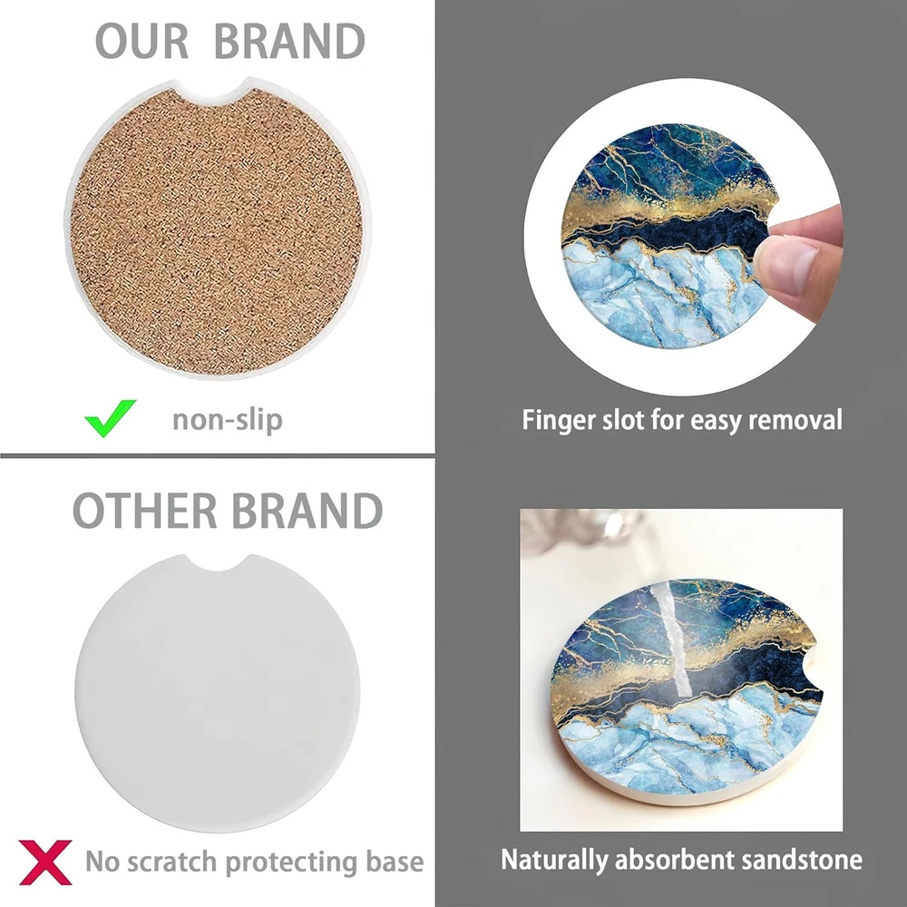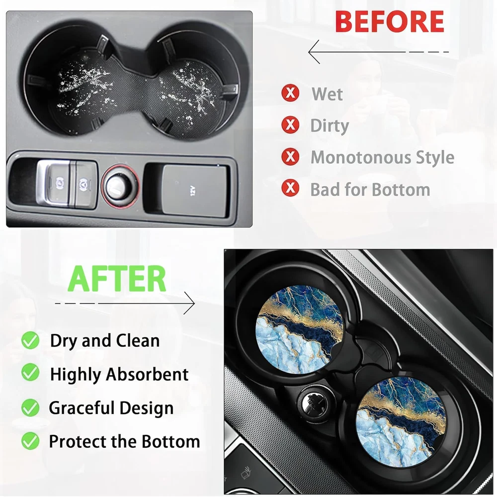 Store New Arrivals Add to Favorite View Feedback Contact Blue White Gold Marble Car Coasters for Women 2 Pack,Abstract Absorbent Car Coasters for Cup Holders Insert Ceramic anti Slip with Finger Notch & Cork Base Auto Accessories Gifts Description Item model number MJY-BD-01 Color Blue White Gold Marble,abstract Material Ceramic Country of Origin China Is Dishwasher Safe No Item Weight 1.76 ounces Shape Round Product Dimensions 2.56"L x 2.56"W Product Care Instructions Hand Wash Only 【Universal Size】Set contains 2 pieces round universal absorbent ceramic car coasters, the diameter is 2.56 inch, the thickness is 0.2 inch. Standard size, wide compatibility, fits 99% brands of cars in the market and also can be used at home and office. Perfect for cars, vans, SUVs and trucks. We recommend measure your car holder diameter before you buy to ensure compatibility. 【Non-slip Cork Base】The bottom of the coaster is designed with cork to prevent your desktop or other surfaces from being scratched. Moreover, the cork can very well enhance the friction of the coaster, so that it can firmly grasp the cup holder, and will not make a collision sound due to the driving process of the car. 【Super Absorbent Coasters】Our car coasters are made of special absorbent ceramic stone, easily absorb the liquid drops on the outside of the cup,keep your car cup holder dry and clean. The ceramic car coasters provide more absorbent than other coaster made of all-cork, leather, paper, cardboard, rubber. 【Unique Groove Design】Specialized finger groove designed to take out or put in with ease. Super easy to clean, it can be clean by dry/wet paper or towel. Our cute car coasters for cup holders adopting exquisite printing process, with great locking-color effect, will not fade or bleed after repeated cleaning. 【Best Gift Choice for Car Lover】This car coaster is design with cute and beautiful style patterns decorations. The unique design makes people shine. It is the best gift choice for family, colleagues, friends and car enthusiasts. Suitable for Valentine's day, Mother's Day, Father's Day, Thanksgiving, birthday, graduation, Christmas and other holiday gifts. Product Description ABOUT US We offer the best prices around on high quality products. Our E-store includes media such as books, movies, music and games while offering electronics, toys, sporting apparel, clothing, tools, general home, garden items and more. SHIPPING We are always working hard to ensure your package arrives as soon as possible. Please understand that some factors like weather, high postal traffic, and the performance of shipping companies are outside of our control. We offer free shipping to the lower 48 states and ship within 2 business days of payment, usually sooner. We do not accept P.O. Boxes. Please provide a physical address. For shipping outside of the continental USA, we only use eBay's Global Shipping Program.The item is shipped to KY and then sent to the rest of the world. International customers are responsible for all duties and taxes. Continue to check out in order to calculate costs for shipping the item to your country. Messages regarding eBay's Global Shipping Program MUST be directed at eBay EXCLUSIVELY. RETURNS We offer a 30-Day Return Policy on items which you are not completely satisfied with. You have the option for a full-refund or an exchange of the item. No returns are available on items shipped outside of the USA. PAYMENT We accept PayPal. CONTACT US This page content is yet to come Please ad us to your favorite seller and visit again later Thank You CUSTOMER SATISFACTION We try our very best to make sure every customer is completely satisfied. If there's a problem, message us! We're happy to help. WE ACCEPT Copyright © 2021 AutoDS. | All Rights Reserved