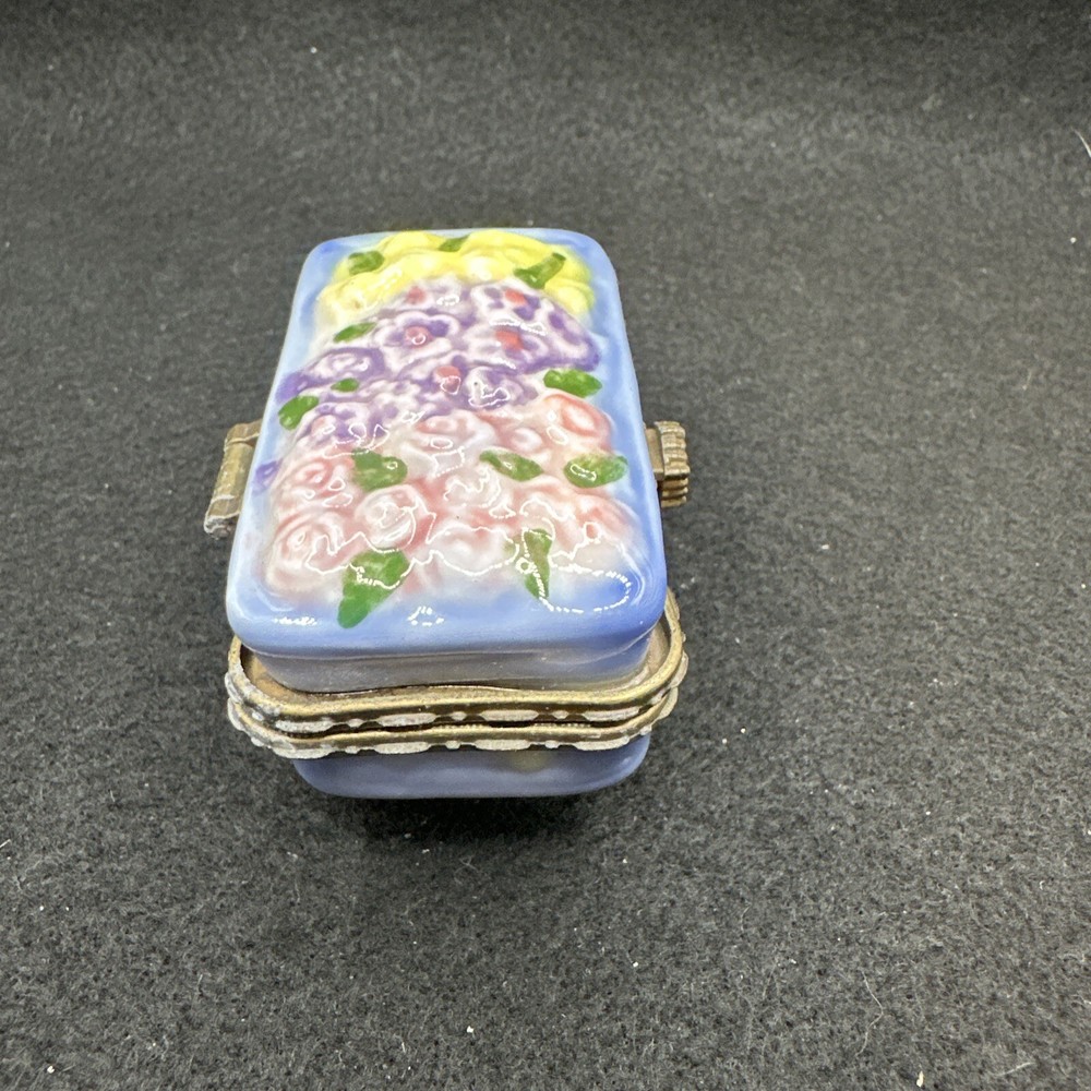 Material: Ceramic Brand: Unbranded Department: Adults Type: Trinket Box Item Height: 2 in Pattern: Flower Shape: Asymmetrical Size: Small Country/Region of Manufacture: Unknown Color: Yellow Finish: Glossy Packaging: Unboxed Item Length: 2.5 in Theme: Gardening