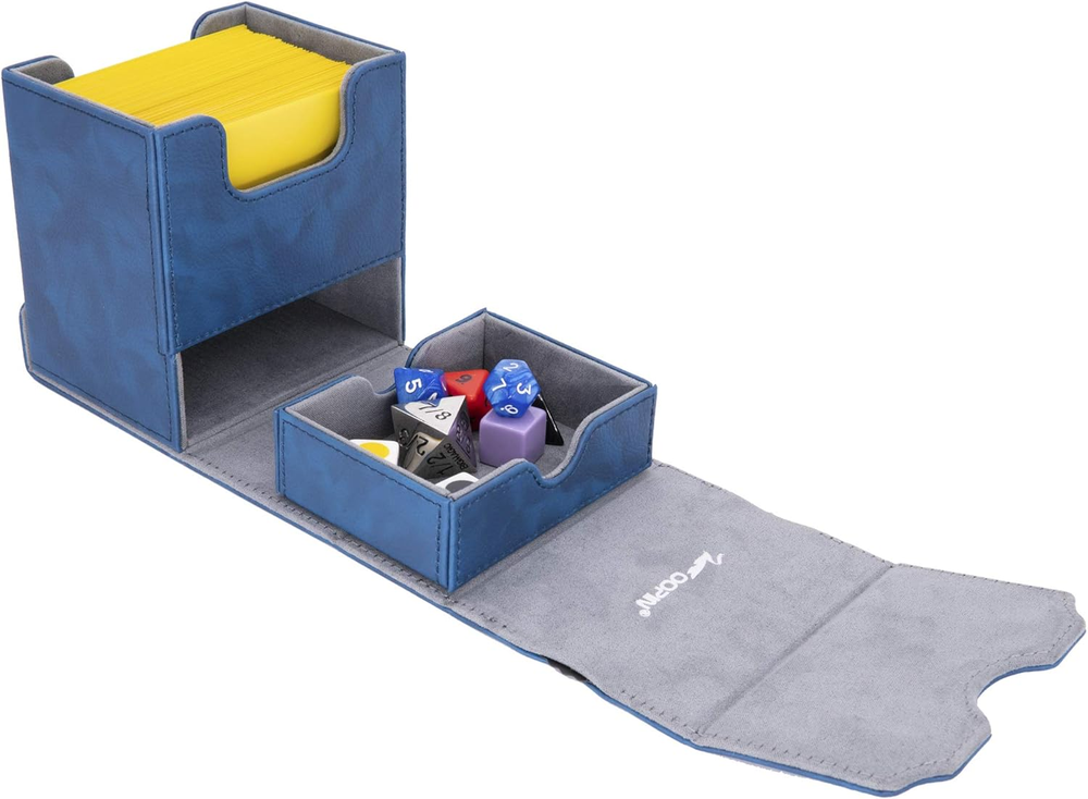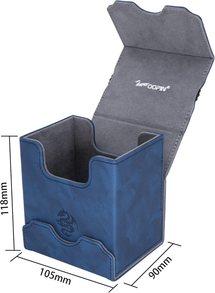 Box holds 150+Naked Cards or 100+ Sleeved Cards Life Counter from 0 all the way up to 99 health,Other indicators can also be placed. Dimension Approx.105L x 90 w x118 H mm Separate compartment for dice, tokens and small gaming accessories Life Counters works perfectly while you don't want to mess around with dice. Product Description Function Life Counter from 0 all the way up to 99 health Design Open design in sections Easy to handle Characteristic Full opening Self contained Dicer box