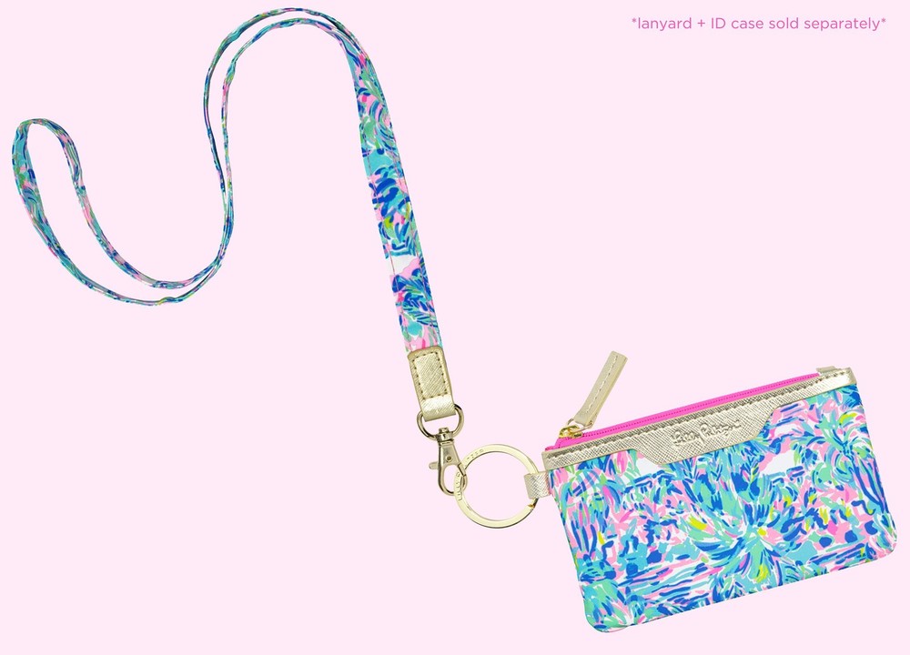 No more searching in the bottom of your bag for your work badge! Choose your favorite pattern and keep your ID and extra cards tucked away in this handy little zipper pouch. ID case wallet is made of a durable polyester material that stands up to daily use and features a clear window to showcase a license or work ID. Plus, the slim card wallet has a metal key ring to easily secure on your matching Lilly lanyard. Badge protector is featured in a multicolored print by . Measuring 3.25 inches (8.3 cm) long x 5.25 inches (13.3 cm) wide, this small zipper pouch makes the perfect travel accessory to ensure your ID cards stay handy. Large Capacity: Mini wallet (3.25 inches/8.3 cm long x 5.25 inches/13.3 cm wide) features a clear window to showcase your IDs while also keeping them protected from wear and tear. The zip opening allows you to easily fill so you can keep your valuables close Travel Friendly: Card holder wallet is made of a durable polyester material and metal hardware that stands up to daily use. The zip ID case features a metal key ring to easily secure to keys, lanyards, or backpacks for quick access Keep it Simple: Includes 1 ID card holder that is designed to keep all your essentials handy, so you can say goodbye to carrying around unnecessary extras. The pretty and practical design allows you to keep your belongings secure, while looking fun and bright Perfect for All Ages: Featured in a bold, colorful print by , this card case complements any personality and adventure! The fun design paired with the metallic gold accents make the perfect accessory for any outfit, no matter the age. Fun Accessory: Complete with a two-sided design and gold metal hardware, this cute keychain wallet adds a pop of color to your day-to-day. Pair this zipper ID case with the matching neck lanyard, and this pretty set will help keep all your cards handy