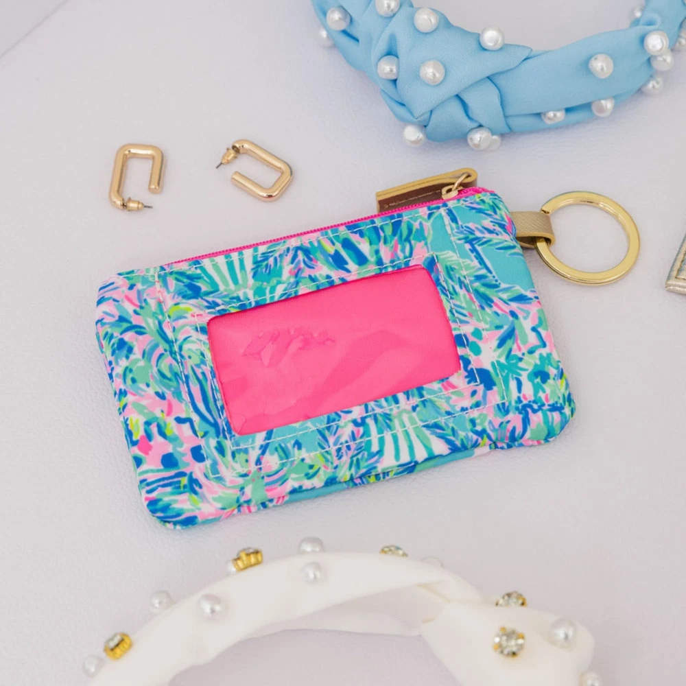 No more searching in the bottom of your bag for your work badge! Choose your favorite pattern and keep your ID and extra cards tucked away in this handy little zipper pouch. ID case wallet is made of a durable polyester material that stands up to daily use and features a clear window to showcase a license or work ID. Plus, the slim card wallet has a metal key ring to easily secure on your matching Lilly lanyard. Badge protector is featured in a multicolored print by . Measuring 3.25 inches (8.3 cm) long x 5.25 inches (13.3 cm) wide, this small zipper pouch makes the perfect travel accessory to ensure your ID cards stay handy. Large Capacity: Mini wallet (3.25 inches/8.3 cm long x 5.25 inches/13.3 cm wide) features a clear window to showcase your IDs while also keeping them protected from wear and tear. The zip opening allows you to easily fill so you can keep your valuables close Travel Friendly: Card holder wallet is made of a durable polyester material and metal hardware that stands up to daily use. The zip ID case features a metal key ring to easily secure to keys, lanyards, or backpacks for quick access Keep it Simple: Includes 1 ID card holder that is designed to keep all your essentials handy, so you can say goodbye to carrying around unnecessary extras. The pretty and practical design allows you to keep your belongings secure, while looking fun and bright Perfect for All Ages: Featured in a bold, colorful print by , this card case complements any personality and adventure! The fun design paired with the metallic gold accents make the perfect accessory for any outfit, no matter the age. Fun Accessory: Complete with a two-sided design and gold metal hardware, this cute keychain wallet adds a pop of color to your day-to-day. Pair this zipper ID case with the matching neck lanyard, and this pretty set will help keep all your cards handy