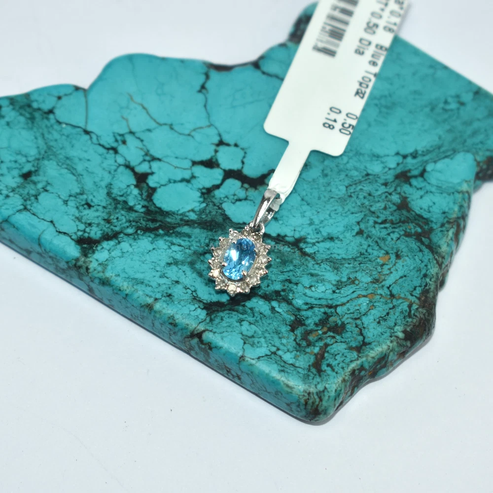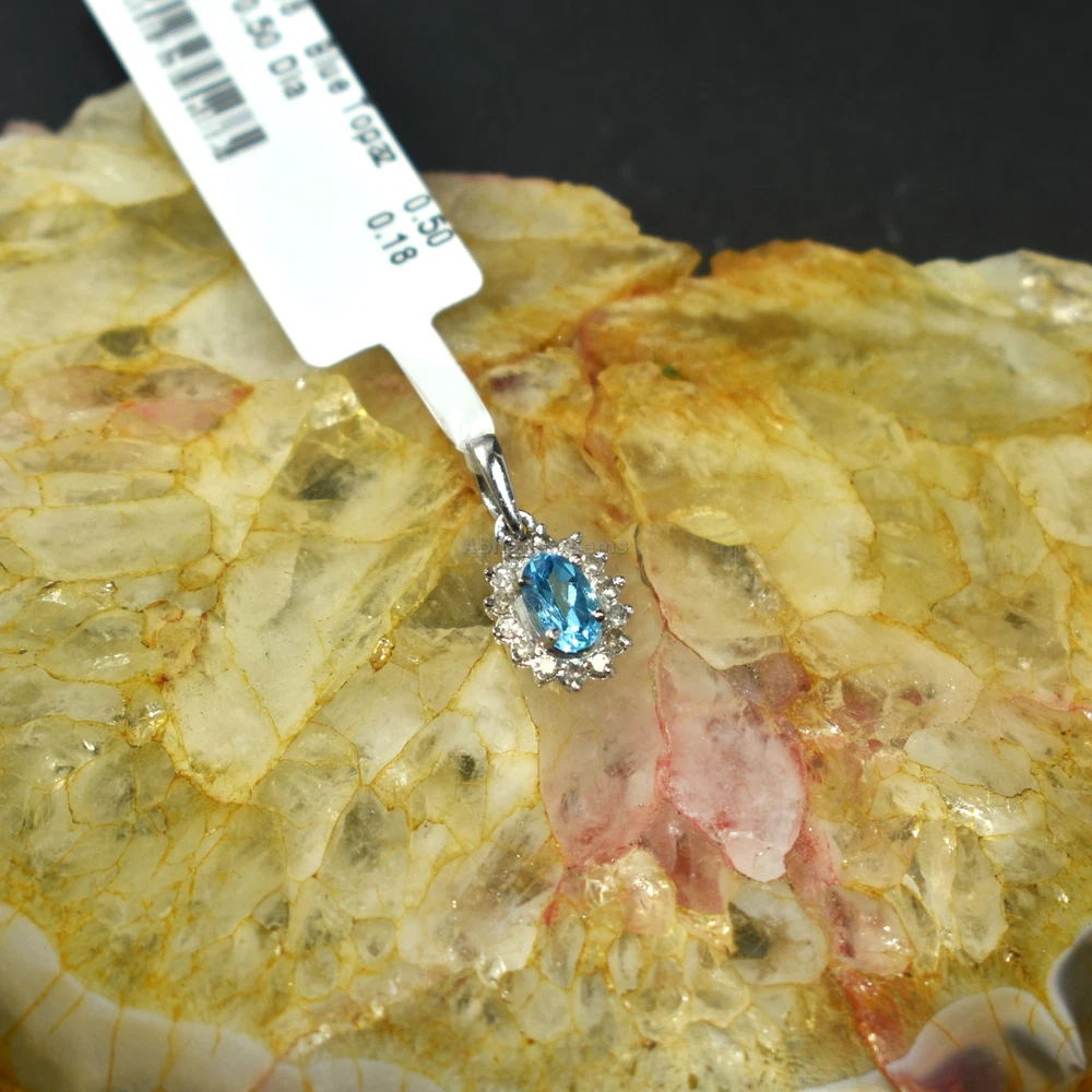 Brand:- ABHANER GEMS Base Metal :- 925 Sterling Silver Gross Weight:- 0.855gm Gemstone:- Blue Topaz And Diamond Gemstone Shape:- Oval And Round Weight Of Gemstone :- 0.50ct And 0.18ct Gemstone Origin :- 100% Natural Metal:- 925 Sterling Silver ( We also make in gold so please feel free ask us if you want) Order:- We Take custom And Bulk Orders PLEASE GIVE YOUR OPENION OR FEEDBACK ABOUT THE PRODUCT. Our first rule is to serve the costumer with best we can in the best way possible as we prefer to give the best quality at the most affordable price. Size:-All Size Available as we are factory people we can make any design in any shape with any gemstone you want all you have to do is just tell us what you want and we will serve you with the best we can. please remember we are small manufacturers so we give the best in best price because there is no middle man to cost you extra. Metal:- Most of our jewelry is in 14K , 18K some are also in White Gold and Yellow Gold. we can make make jewelry according to your need. Gemstone :- We use 100% Natural gems stone so you do not have to worry about fake stones. you can get it checked in any laboratory if it is not that we will give you 200% percent money back Making: - we are operating from Jaipur as we here are working from a very long time so we use traditional handmade ways to make most of our jewelry. COSTUMER SERVICE If You Have Any Problem Feel Free To Contact Us anytime you want as we are always here to serve you with the best we can It's a perfect gift for you and your loving ones it's quite comfortable for wearing and suitable for all occasions styles and ages. All the items in my shop are Made in our own factory, you can design your own jewelry and let me make it as your design, In addition, we can make special and meaningful jewelry for you. It is nicely made with love and passion for every buyer and we are proud of our products. SHIPPING INFORMATION All orders are shipped by us within 3-5 business days. as All the items in our shop is Made in our own factory therefore carefully and professionally made as per our Quality Standard, sometimes we need some extra time to produce an item as we believe in costumer satisfaction. Once ready, they will be shipped and we will make you available with the Online Tracking. Shipping takes around then 1-3 weeks to reach you. We will inform you once the item leaves so you can Track it. Each Item is Fully Insured in Transit so please do not worry about damage or loss. You are Covered. PAYMENT INFORMATION We accept all the available Payments for your convenience. Please contact us if you wish to Get a support or help.