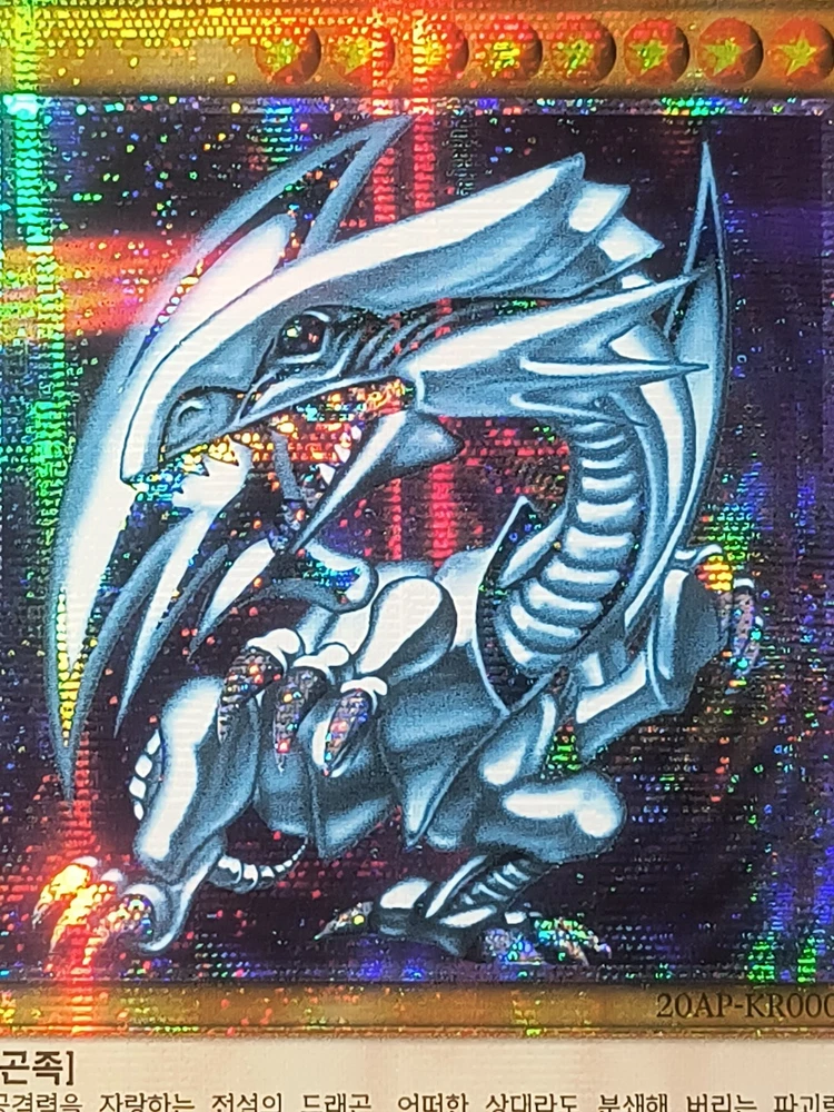 The product is a secret rare Yu-Gi-Oh! card named "Blue-Eyes White Dragon" from the 20th anniversary packs wave 1. This Korean version card features the character blue eyes white dragon and has a secret rare rarity. Manufactured by Konami, the card is of standard size, has a foil finish, and belongs to the monster card type.Pretty darn rare and cool for fans and collectors of the Yu-Gi-Oh! TCG game.