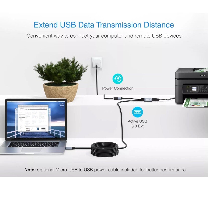 The USB 3.0 Active Extension Cable supports 480-Mbps transmission speed of the latest USB 3.0 standard. This lets you take complete advantage of your peripherals and devices. USB 3.0 Active Extension/ Repeater cable and its uses - This cable lets you extend USB connections by 10 meters (32 feet) between your computer and USB devices thereby giving you the added ability to move away from your desktop while using your VoIP phone or mouse - You can connect USB devices such as printers, keyboards, storage devices, Display Link USB displays, mice and most miscellaneous USB devices from across the room with this cable - The cable features a Male A connector on one end that plugs into your computer and a Female A connector on the other that connects to the cable you need extended - Note: Do check your device manuals to make sure this is the connector you need - Note: Not to be used for charging USB devices like smartphone and music players Key Features - Premium Shielding & Built in Amplification Chipset: The Cable features premium shielding and a built in amplification chipset that provides protection against interference from electromagnetic and radio-frequency signals thus enabling higher performance. - Gold-Plated Connectors: The repeater cable features gold-plated connectors that resist corrosion for signal purity. Compatibility - Windows 7, Vista, XP, 2000, ME, 98SE - Mac OS - Linux - No drivers required on any OS - Devices with precise timing requirements (such as USB cameras) not recommended Technical Specifications: - Connector Type: USB Type A Male, USB Type A Female - Cable Length: 10 meter / 32 feet - Transfer Rate: 480 Mbps