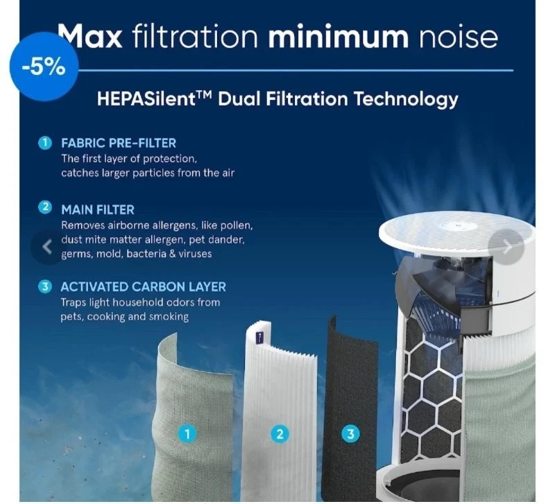 The Blueair Blue Pure 411a Max HEPASilent Air Purifier is a floor-mounted, plug-in unit designed for whole room application in any room. Manufactured in 2020, this air purifier features a HEPA silent filtration technology with an activated carbon filter that has a life of 6 months. It also includes an odor sensor for detecting and eliminating odors, and an atomizer for humidification. With a timerless control and electrical power source, this Blueair model offers clean and fresh air for your indoor space.