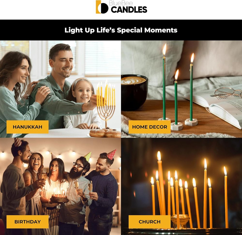 Brand: BlueBee Item Package Quantity: 1 UPC: 7445042148120 Shape: taper Style: Modern Product Care Instructions: Regarding candleholders: Replace the candle when only a few centi Candle Type: Taper Candle Has Crackle Wick: No Product Dimensions: 0.27"W x 7"H Item Weight: 0.28 Kilograms Scent: Honey Theme: Festive Celebrations Color: Blue Material Feature: Natural Number of Items: 50 Specific Uses For Product: Celebration Packaging Type: in bulk, boxed Material Type Free: beeswax, free from paraffin, synthetic, citronella Item model number: Blue Target Audience: Any Audience Material: citronella, synthetic, paraffin_wax, beeswax, Beewax Manufacturer: BlueBee Batteries Included?: No Part Number: BLUEBEE Sky Type: Does not apply Batteries Required?: No Container Material: Steel gtin13: 7445042148120 Occasion: Birthday, Hanukkah Unit Count: 40.0 Count Indoor/Outdoor Usage: Indoor Number Of Pieces: 50 Package Information: Can Seasons: All Season Are Batteries Included: No Size: 50 pcs