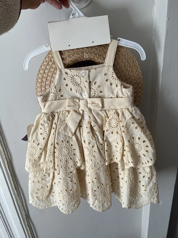 This Blueberi Boulevard Girls Sleeveless Beige Dress set features a floral pattern with a sleeveless design, perfect for summer, fall, or spring occasions. The dress has a button closure and is crafted from a blend of polyester and 100% linen, making it machine washable for easy care. The knee-length sweater dress comes in a size suitable for 12-month-old girls and includes a matching straw hat for a cute and stylish look. Ideal for parties, casual outings, or formal events, this outfit is a great addition to any little girl's wardrobe.