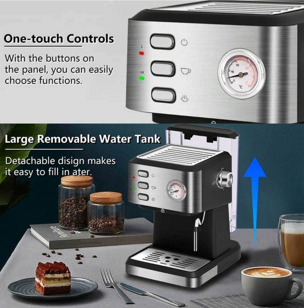 $ 174.24Espresso Machine,20 Bar Semi-Automatic Espresso Maker with Milk Stainless Steel