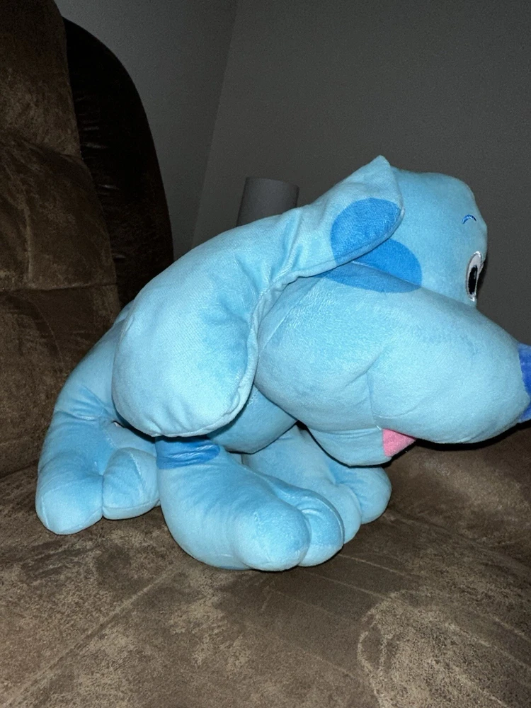 This is used and in good condition. This Blues Clues Pillow Buddy is a must-have for fans of the Nickelodeon show. This medium-sized plush pillow features a cute and cuddly dog design in blue, making it perfect for both boys and girls aged 3 and up. It is made in China and belongs to the Blue's Clues character family. The Pillow Buddy is perfect for children aged 8-11 years and 4-7 years old, and it is not part of a custom bundle. It is a great addition to any child's stuffed animal collection and is sure to bring joy and comfort to any Blues Clues fan.
