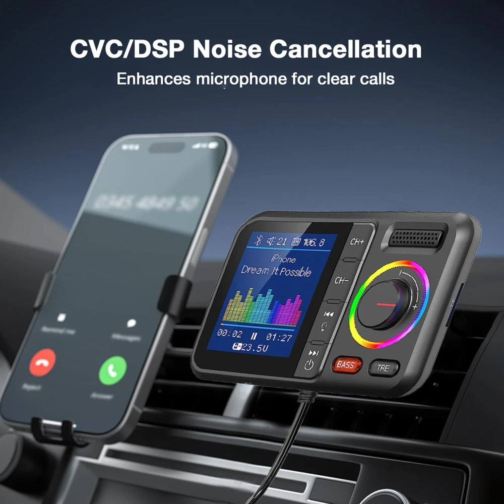 Bluetooth 5.0 FM Transmitter with Dual USB-C PD Charging and Hands-Free Calling