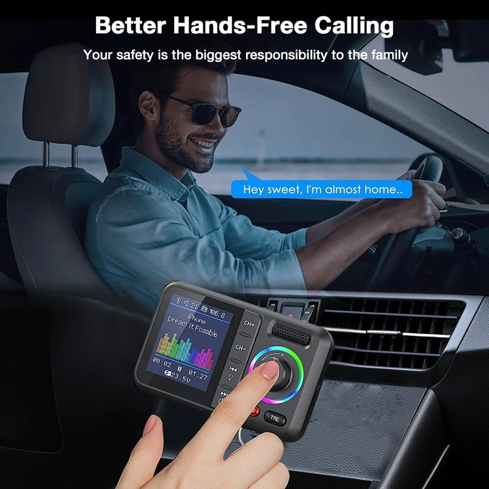 This Bluetooth FM transmitter is a game-changer for my car rides! Super easy to set up, delivers crisp audio, and charges my phone fast with dual USB ports. The hands-free calling works flawlessly, and the stable Bluetooth 5.0 connection means no more annoying dropouts. Love that it keeps my car clutter-free while upgrading my driving experience—totally worth it!