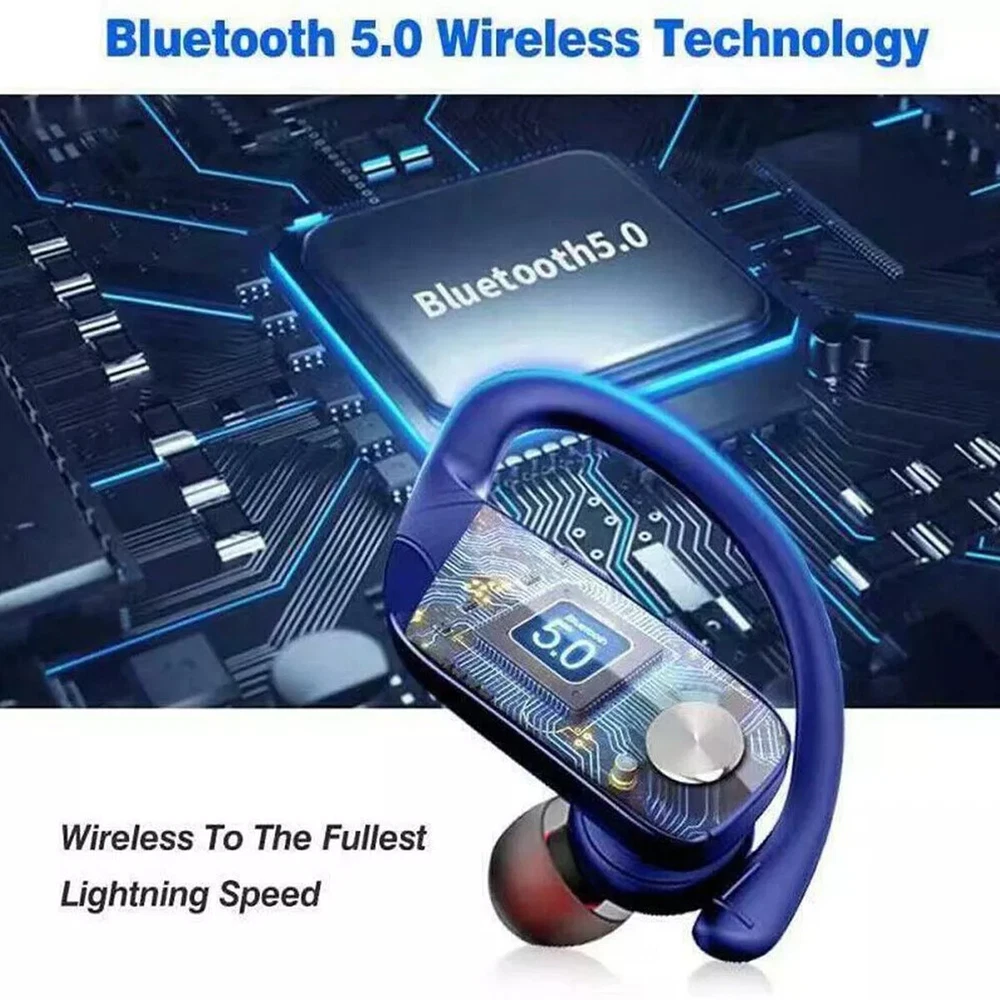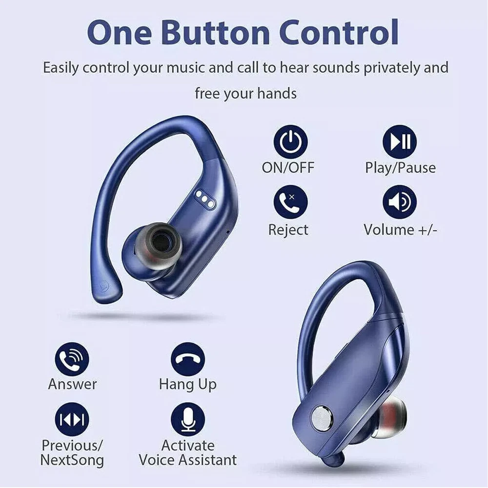 Bluetooth 5.0 True Wireless Earbuds With Mic Headphones Earhook Sport Running Wireless Earbuds,Wireless Headphones HiFi Stereo Earphones 5 hours Playtime In-Ear Earbud, Bluetooth 5.0 Sport Earphones with LED Power Display for Android iOS Blue Note : There is a little plastic coating over the charging pins. pls take it off before use . Specifications: Product Name: TWS Bluetooth Headset Bluetooth Version: 5.0 Power Input : DC 5V Headset Battery Capacity: 3.7V/ 50mAh Call/Play Time: About 5 hours Charge Box Battery Capacity: 3.7V/ 600mAh Support Agreement: HSP/HFP/A2DP/AVRCP Sensitivity: 103+3dB Frequency Response Range: 20Hz-20KHz Charging Time (h):About 2hs Taking Time: 4-5hs Standby Time (h):15days Transmission Distance:10m Charging Criteria:With Charging Case Features: 1.Totally wireless high-performance earphones 2.Up to 5 hours of listening time( more than 30 hours with charging case) 3.Adjustable, secure-fit earhooks for lightweight comfort and stability 4.Reinforced design for sweat & water resistance during tough workouts 5.Volume & track controls on each earbud, voice capability, and auto play/pause 6. Dual LED Displays Charging Case: Wireless earbuds with LED display make it obvious to show the battery power of the case and ear buds. The remaining power in percentage on the screen is shown to the left of the bluetooth headphones. The right side is assigning to a charging process of each bud, there are separated power consumption indicators by 4 grids in total, each grid represents 25% power of bud. During Charging, the LED indicator light will flash. 7. Automatic Pairing and Touch Control: The Bluetooth in-ear headphones will automatically pair with each other when you open the charging box and automatically connect to the last paired device. The range can reach up to 33ft/10m away. When you put it back, the bluetooth earphones shut down and are recharging. Wireless bluetooth headphones Together with smart touch sensors, the true wireless headphones can achieve the ultimate control. Play/pause music, answer/end a call, adjust volume, next/previous track.... 8. Ergonomic Design and IP6 Waterproof: Aoslen Wireless Bluetooth Earphones, ergonomically designed to be very light and easy to carry. (S/M/L) 3 different sizes of ear caps, designed for different ear shapes to ensure a comfortable fit. This headset is IP6 Waterproof, Can withstand accidental splashes of water, sweat or raindrops, Very suitable for sports, training, running, etc Package Includes: 2 x Bluetooth Earbuds 1 x Charging Box 1 x Charging Cable 1 x User Manual 3 x Ear Cap Sets (Small, Medium, Large) 【Service Guarantee】Thanks for visiting our Store! We try to accurately describe our item to the best of our knowledge, if there is any incorrect, please feel free to let us know via message. We hope you can contact us via message with any issue before you decide to leave neutral or negative feedback or open return request or case. We will reply to you as soon as possible when we see your email at work. Payment Delivery details Terms of sales About us Contact us Payment 1.We only accept PayPal as payment method. 2.The item will be shipped to buyer’s CORRECT and VERIFIED Ebay Address. 3.We are not responsible for the package lost due to incorrect address. 4.Our price do not including any custom or duty, VAT and local tax. 5.Payment must be received within 7 days of winning the auction 6.Please contact us if you need file an extension for any late payment. Delivery details 1.All item are shipped via DHL eCommerce or USPS Frist Class express Service within 2 business days once full payment is settled.If you can't get your items in time,please contact to us first,we will check and solve it for you soon.We will reply your mail within 24 hours normally. Sometimes have a little delay due to the weekend or holiday.If you can't get our mail after 48 hours,please check your spam or contact to us with other mail address or via ebay. 2.We only ship to confirmed Ebay addresses. Your Ebay address MUST MATCH your Shipping address. 3.If you want to change the address please E-mail us right after you pay for the item. 4.SERVICE TRANSIT TIME is provided by the carrier and excludes weekends and holidays. Transit times may vary, particularly during the holiday season. 5.If you have not received your shipment within 30 days from payment, please contact us. We will track the shipment and get back to you as soon as possible with a reply. Our goal is customer satisfaction! Terms of sales 1.Please contact us via eBay Message if you have NOT received item in 30 days , we will check it with post office, and then resend or refund any missing item. 2.i n the unlikely event that your product is faulty in anyway, you must contact us ASAP and then return it within 7 Days of receipt. 3.Return shipping fee should be paid by buyer if wrong item you bought (wrong model or wrong color) and item is defective. We will provide replacement or refund after we received and confirmation. 4.if you need return, please contact and get an address for return from us, then declare your package as “Return”, write your Ebay ID and item number outside About us 1. Dear buyers, we appreciate your business, if you are satisfied with our service, 2. Please leave us a positive feedback and rate the details of the transaction (Detailed Seller Ratings) with a "PERFECT 5 Star. 3. Your recognition will make us more confident to develop business and serve you better. 4. Our goal is to make sure you are a happy buyer and pleasant shopping with us. Please email us before leaving any 1 or 2 ratings, negative feedback or open any dispute. We understand the concerns and frustrations you might have, and will do our endeavor to resolve the issues. Please give us the opportunity to resolve any problem. Contact us 1. We strive for 100% customer satisfaction on every sale we complete. 2. If, for any reason you are not satisfied with your purchase, please contact us before leaving neu