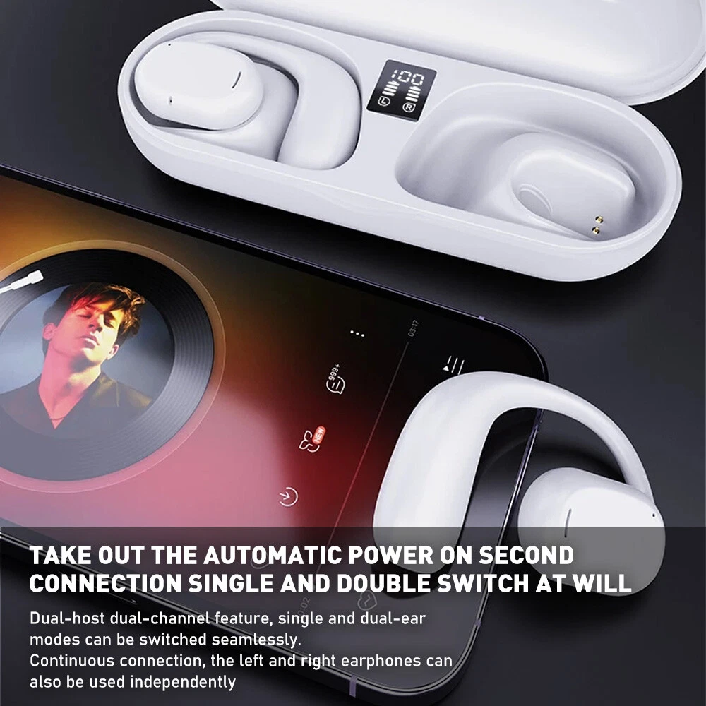 Description: Type: Bluetooth Earphones Form Factor: In-Ear Only Microphone Type: Built-In Number of Earpieces: Double Type: Canal Earbud (In Ear Canal) Color: White/Black Feature: 1. Unique Ear-clip Style: The Bluetooth earphones don’t touch your ear canal directly or plug up your ear holes entirely, so you won’t feel pain or bulged in the ear. New ear-clip earphones use ergonomic design, stably clipped on your ears, and touch your ears in such a small area that you will feel cool, free and comfortable. Made of memory silicone, it is non-deforming so it can clip there firmly without dropping. 921modigt Your Best Online Business Partner Bluetooth 5.3 Headset Wireless Earphones Earbuds Ear Hook Stereo Headphones NEW Description: Type: Bluetooth Earphones Form Factor: In-Ear Only Microphone Type: Built-In Number of Earpieces: Double Type: Canal Earbud (In Ear Canal) Color: White/Black Feature: 1. Unique Ear-clip Style: The Bluetooth earphones don’t touch your ear canal directly or plug up your ear holes entirely, so you won’t feel pain or bulged in the ear. New ear-clip earphones use ergonomic design, stably clipped on your ears, and touch your ears in such a small area that you will feel cool, free and comfortable. Made of memory silicone, it is non-deforming so it can clip there firmly without dropping. 2. Bluetooth 5.3 Version: Upgraded Bluetooth 5.3 Chip boasts outstanding merits of faster and more stable connection and longer transmission range of about 15 m. It provides you with clearer sound and smoother gaming experience. 3. HiFi Super Bass: Built-in high-grade composite moving coils deliver lossless sound, clear treble and deep bass, bringing you utmost pleasure of listening. 4. Single Earbud Weighs Only 5Grams: With an ultra-light body, it offers a comfortable and secure fit that do esn't cause any ear fatigue or discomfort , providing an unrestricted listening experience that feels weightless and comfortable. 5. Long Battery Life: Fully charged once, the earphones can be used for 3 or 4 hours. If used with the charging case, it can work for up to 16 hours. Stand by for over 120 hours. No frequent power off. You can happily play games, listen to music and watch videos. 6. Easy Touch Control: Rich functions are started by touch operation. No complicated procedures. You will get used to controlling the earphones quickly. 7. Intelligent Noise Reduction: Lower noise, high-definition binaural call. Communicate clearly. Usage: Step 1: Turn on the phone’s Bluetooth. Step 2: Open the charging case cover. Step 3: The connection interface will show on the phone. Step 4: Wait for the phone screen to show that the connection is successful, then take out the headphones and use it. Package Includes: 2x Earbuds (left&right) 1x Charging Case 1x User Manual 1x Charging Cable Note: Come With original box If you have any problem, please contact us, thank you! Item Specifics Brand DUDAO Type Earbud (In Ear) Model DUDAO U17H Connectivity Bluetooth Manufactured Earphnoe, Headset, Wireless Earphone Number of Earpieces Double Form Factor Ear Clip Microphone Type Built-In Compatible Brand Universal, For Apple, For Google, For LG, For Samsung Name Ear Clip Earphone Compatible Model Universal Occasion Sports & Running & Exercise & Entertainment & Music & Driving Charging box battery capacity 400mAH Earphones battery capacity 40mAH Features1 Active Noise Cancellation, Bone Conduction,Wireless Features2 Built-in Microphone, Built-In On/Off Switch,Wireless Char Features3 Call functions, HD Voice, Noise Cancellation, Features4 Rechargeable Battery, Stereo, Surround Sound, Features5 Sweat-Proof, Touch Control, Waterproof, Water-Resistant Waterproof IPX6 Bluetooth Version 5.3 Features6 OWS Open-Air Conduction Wireless Earphone Features Built-in Microphone Wireless Technology Bluetooth Manufacturer Warranty 2 Years Payment Returns 921modigt Your Best Online Business Partner DESCRIPTION PAYMENT SHIPPING RETURN POLICY CONTACT US Bluetooth 5.3 Headset Wireless Earphones Earbuds Ear Hook Stereo Headphones NEW Description: Type: Bluetooth Earphones Form Factor: In-Ear Only Microphone Type: Built-In Number of Earpieces: Double Type: Canal Earbud (In Ear Canal) Color: White/Black Feature: 1. Unique Ear-clip Style: The Bluetooth earphones don’t touch your ear canal directly or plug up your ear holes entirely, so you won’t feel pain or bulged in the ear. New ear-clip earphones use ergonomic design, stably clipped on your ears, and touch your ears in such a small area that you will feel cool, free and comfortable. Made of memory silicone, it is non-deforming so it can clip there firmly without dropping. 2. Bluetooth 5.3 Version: Upgraded Bluetooth 5.3 Chip boasts outstanding merits of faster and more stable connection and longer transmission range of about 15 m. It provides you with clearer sound and smoother gaming experience. 3. HiFi Super Bass: Built-in high-grade composite moving coils deliver lossless sound, clear treble and deep bass, bringing you utmost pleasure of listening. 4. Single Earbud Weighs Only 5Grams: With an ultra-light body, it offers a comfortable and secure fit that do esn't cause any ear fatigue or discomfort , providing an unrestricted listening experience that feels weightless and comfortable. 5. Long Battery Life: Fully charged once, the earphones can be used for 3 or 4 hours. If used with the charging case, it can work for up to 16 hours. Stand by for over 120 hours. No frequent power off. You can happily play games, listen to music and watch videos. 6. Easy Touch Control: Rich functions are started by touch operation. No complicated procedures. You will get used to controlling the earphones quickly. 7. Intelligent Noise Reduction: Lower noise, high-definition binaural call. Communicate clearly. Usage: Step 1: Turn on the phone’s Bluetooth. Step 2: Open the charging case cover. Step 3: The connection interface will show on the phone. Step 4: Wait for the phone screen to show that t