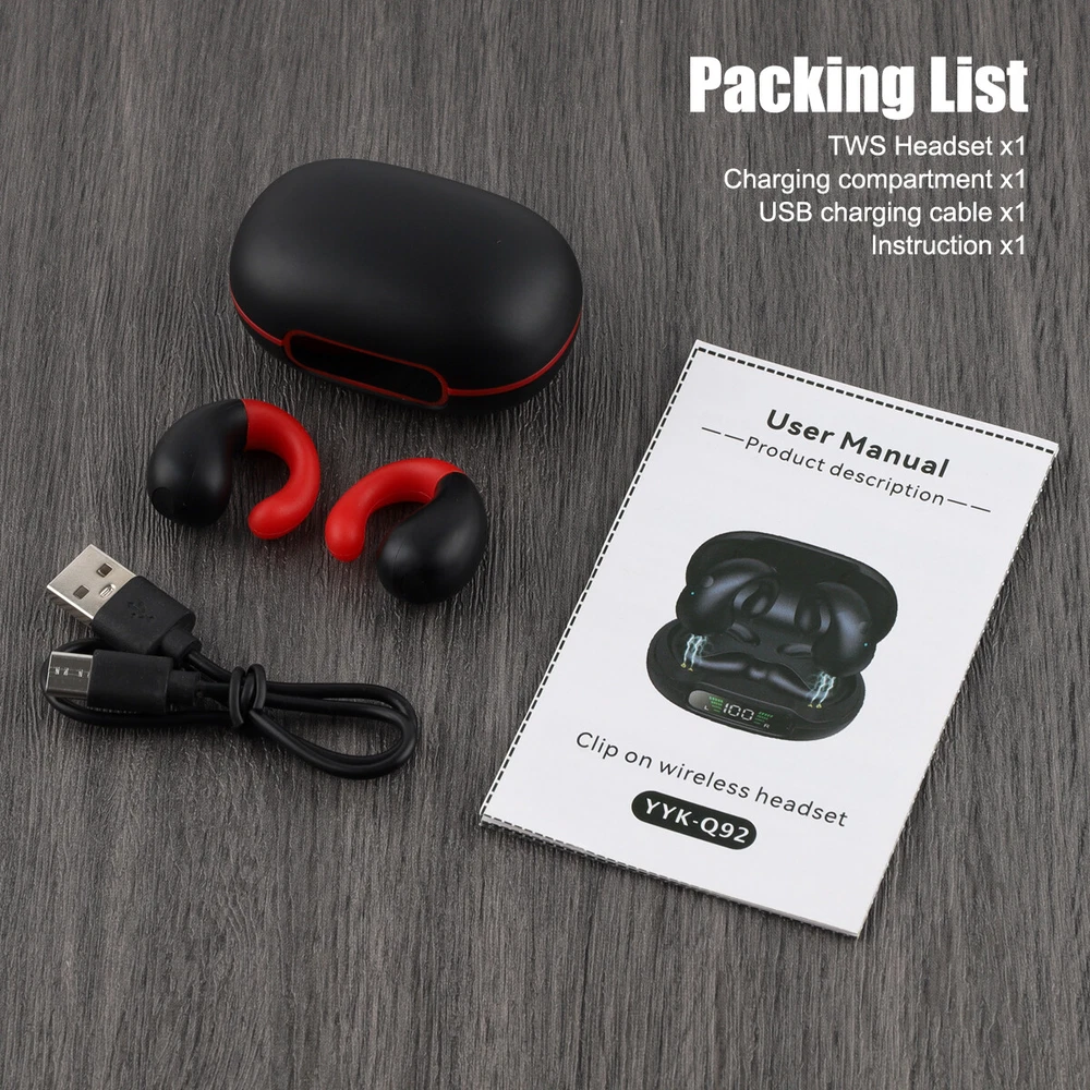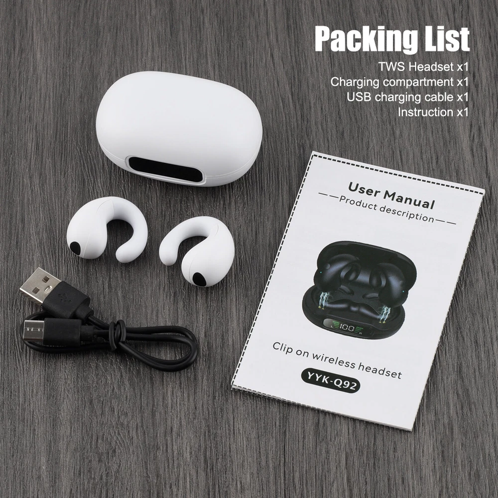 You may also like Wireless Bluetooth 5.2 Headset TWS Earphones Earbuds Stereo Headphones Ear Hook/ 9.42 USD Free shipping LED Over The Ear Earbuds True Wireless Open 144+ Translator Earphones V5.4 OWS . 19.99 USD Free shipping TWS Wireless Bluetooth Waterproof Earbuds Bluetooth5.3 Headset Noise Cancelling. 11.88 USD Free shipping Translator Earbuds 150+Languages-Real Time Online Off-Line Translation Earphones 13.99 USD Free shipping for iPhone IOS Translate Earbuds Real-Time Translator Earphones Online / OffLine 17.39 USD Free shipping Wireless Bluetooth 5.3 Bone Conduction Headphones Outdoor Sport Earbuds Headset_ 12.59 USD Free shipping New Wireless Bluetooth 5.3 Earbuds Ear Clip -Bone Conduction Headphones Headset. 15.45 USD Free shipping 2024 144+Languages Translator Earbuds Real Time Translator Earphones Smart Voice 15.95 USD Free shipping Open-Ear Wireless Bluetooth 5.3 Earphones Bone Conduction Headphones Waterproof# 21.99 USD Free shipping Smart Voice Translator Earbuds 150+ Languages Real Time Translator Earphones A++ 17.88 USD Free shipping TWS Smart Touch Screen Earbuds Wireless Bluetooth Headphones Headset Mic Stereo※ 23.82 USD Free shipping Product Description Bluetooth 5.3 Wireless Ear-Clip Bone Conduction Headphones Earbuds Sport headset Product selling points: 1) Senseless clip on earphones, comfortable to wear, painless to wear for a long time, firm clip on the ears, and can't be thrown off violently 2) Panoramic stereo sound effect, clear sound quality, lossless sound quality 3) The headphones adopt the latest directional sound transmission technology, with no leakage of sound and concentrated volume 4) The earphones are equipped with titanium metal memory material, which does not deform after bending, making them sturdy and durable 5) Comfortable and skin friendly shell material, friendly to ear skin. High elasticity material, stretchable and adjustable angle 6) Adopting Bluetooth 5.3 chip, with clear sound quality and stable connection. Low power consumption and longer usage time 7) Accurate touch area, fast operation feedback, no accidental touch, full score for user experience 8) Built in new material battery, paired with battery compartment for easy full day battery life 9) Digital display of battery level, clear understanding of battery remaining 10) The size of the charging compartment is only 6.6 * 4.1 * 3.2cm, which is compact and does not take up space when placed in a pocket Product parameters: Product material: ABS silicone titanium metal Earphone size: see image Earphone style: clip on, stylish, sporty Bluetooth version: V5.3 Bluetooth name: Q92 Connection distance: 10 meters Wearing method: ear clip Applicable equipment: universal Control method: touch control Earphone battery: 40mA Talk time: approximately 6 hours Listening time: about 6 hours Headphone charging time: 1 hour Charging compartment battery: 300 mA Packaging list: TWS earphone x1 Charging compartment x1 USB charging cable x1 Instructions x1 Payment We accept PayPal only. If buyer want to delay the payment because of financial problem, please contact me by the ebay message within 3 days Payment via PayPal (PayPal accepts all major credits/debit cards and eCheque) ECheque payment will tak e 3-10 days to get clear, thus DELAYing the shipment. Shipping Handling time: 1 business day (Orders are not processed on weekends & holidays) Tracking information will be sent once item is shipped. Local pick-up is unavailable at the moment. For international shipping and shipping to Guam, Hawaii and Alaska, Please contact us before placing the order. Item is shipped to ebay address. Leaving correct address can minimize delay. Terms For any issues with Defects, Return, Item Exchange request, please contact us first and send us a message first before opening any type of case or request. We devote ourselves making EVERY CUSTOMER in 100% Satisfactory and resolve any problem. We highly value and appreciate your business. Thank you. No returns will be accepted without an RMA number. Please contact us for the RMA number. Return is acceptable within 30 days of delivery. Return for replacement or money back is optional. Returned items must be in the brand new, unaltered and resalable condition. Seller is not responsible for any labor cost, expense in a dealer store, or damage due to wrong installation. Returns Return is accepted within 14 days after the buyer's receiving the item. (Excluding contrived damagement or misusage).100% money-back Guaranteed! All product will be tested in 100% before delivery.If the item is defected by the processing of postage,Buyer has up to 14 days from date of receipt for exchange of a new one.All shipping charges for returned products are to be paid by the buyer,Please contact us for the return address Contact Us All messages will be answered within 24 office hours. Please contact us either by clicking "contact seller" in the "purchase history" section or simply click "ask a question" at the bottom of this page. If you are unsatisfied with our item or service, please contact us before leaving any feedback. We are committed to resolve all issues in a friendly and satisfactory manner. We always reply to messages within 2 business days (off-duty at weekend). If you do not get a response from us, then please check your junk or spam mailbox. powered by