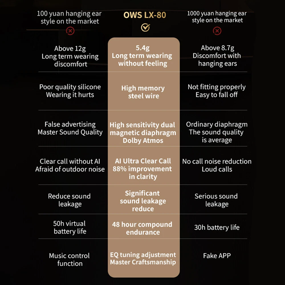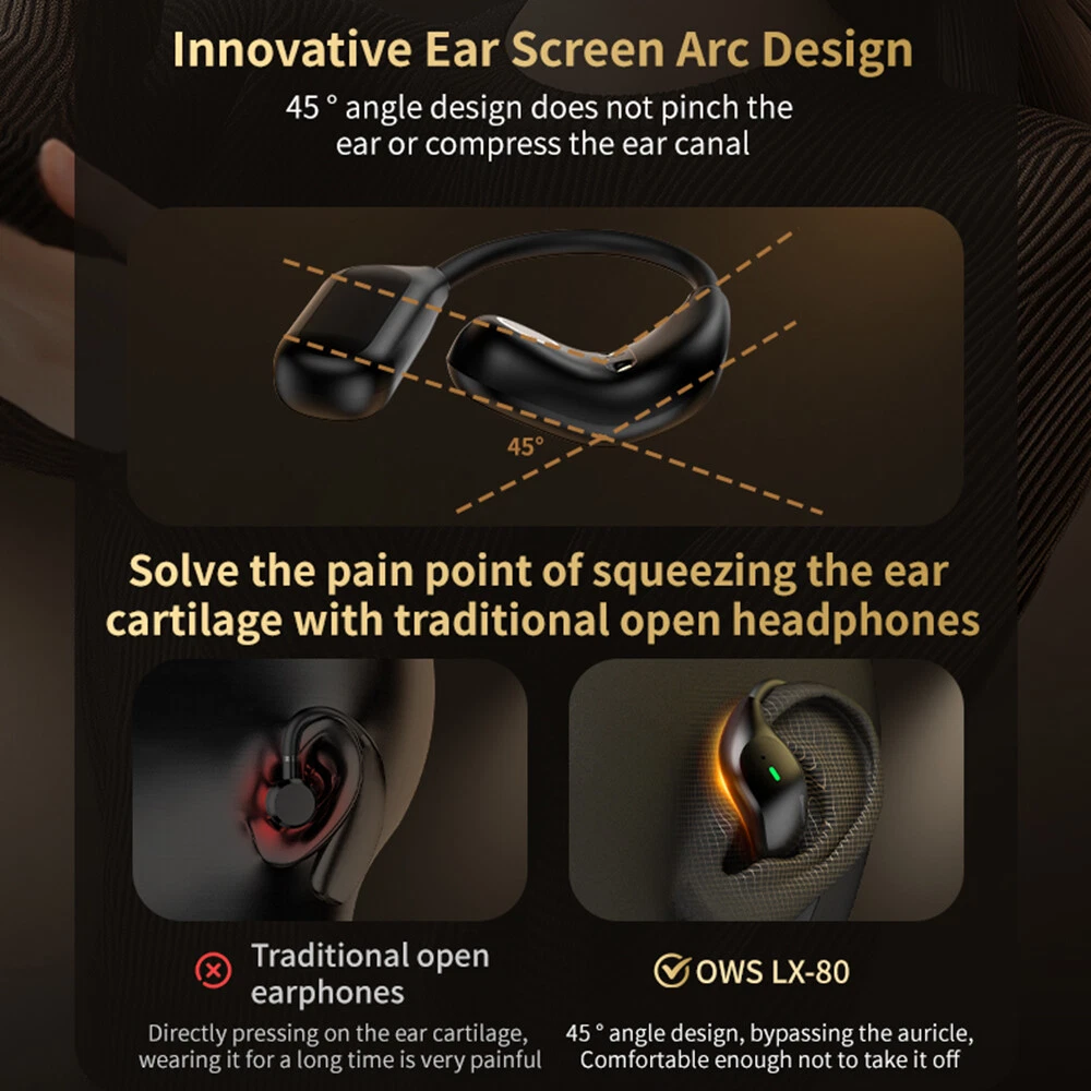 Features: ▷ Full-color LCD touch screen, free control of music playback, noise cancellation control, EQ equalizer, volume adjustment, flashlight, headphone finder and more. ▷ Call noise reduction is no longer noisy. Speak freely, intelligent wideband deep noise reduction, up to 99.44% of the external noise can be blocked, no fear of noise, quietly enjoy the music. ▷Three kinds of spatial sound effects can be adjusted by you, and the intelligent music/game/movie modes can be switched at will, so that you can immerse yourself in them and experience a variety of entertainment life. ▷Personalized screensavers can be switched at will, and the three high-value dynamic screens can be switched at any time. The colorful light fusion screen technology can be used to customize the wallpaper, and the three high-value dynamic screens can be switched at any time. ▷ HiFi sound quality, bluetooth headset with in-ear design, composite diaphragm moving coil unit, full and thick sound, natural sound, restore the realism of the audio and sound dynamics, as if you were in the real world, to provide you with realistic sound. ▷ High-speed Bluetooth 5.4 second connection No sense of delay, customized Bluetooth 5.4 chip for high-quality music experience, more robust low-power Bluetooth connection, low-latency gaming experience. ▷21 languages, English/Russian/Spanish/German/French/Japanese/Korean/Portuguese/Malay/Burmese/Turkish/Dutch/Italian/Vietnamese/Hebrew/Thai/Indonesian/Farsi/Arabic/Chinese Simplified/Chinese Traditional. Specification: *Product Name: Bluetooth Headset *Product Model: LX80 *Headset type: on-ear *Noise canceling function: ENC *Bluetooth protocol: HFP/HSP/A2DP/AVRCP *Audio decoding: AAC,SBC *Bluetooth version: 5.4 *Transmission distance: ≥10 meters (without obstacles) *Speaker specifications: ΦF13mm composite film copper ring *LCD screen: 2-inch touch screen *Waterproof rating: IPX5 *Working time: 7-8 hours *With charging case: 48 hours *Input voltage: DC5V1A *Headset battery capacity: 45mAh *Charging compartment battery capacity: 600mAh *Charging port: Type-c *Charging time: 1.5 hours *Product material: ABS *Product color: black / skin color Package List: 2*Bluetooth headset (left and right ear) 1*Charging compartment 1*User Manual 1*Type-c cable Attention: 1.Please allow 1cm error due to manual measurement! 2.Due to different display resolution, please take into account the slight color difference! On Nov 15, 2024 at 18:18:03 PST, seller added the following information: