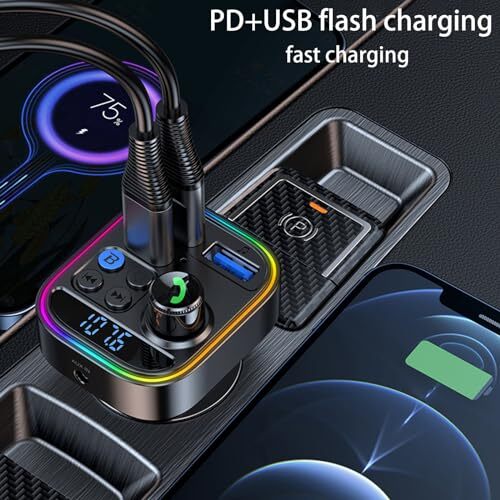 $ 9.67Bluetooth FM Transmitter PD 30W, Bluetooth Car Adapter with QC3.0 Fast