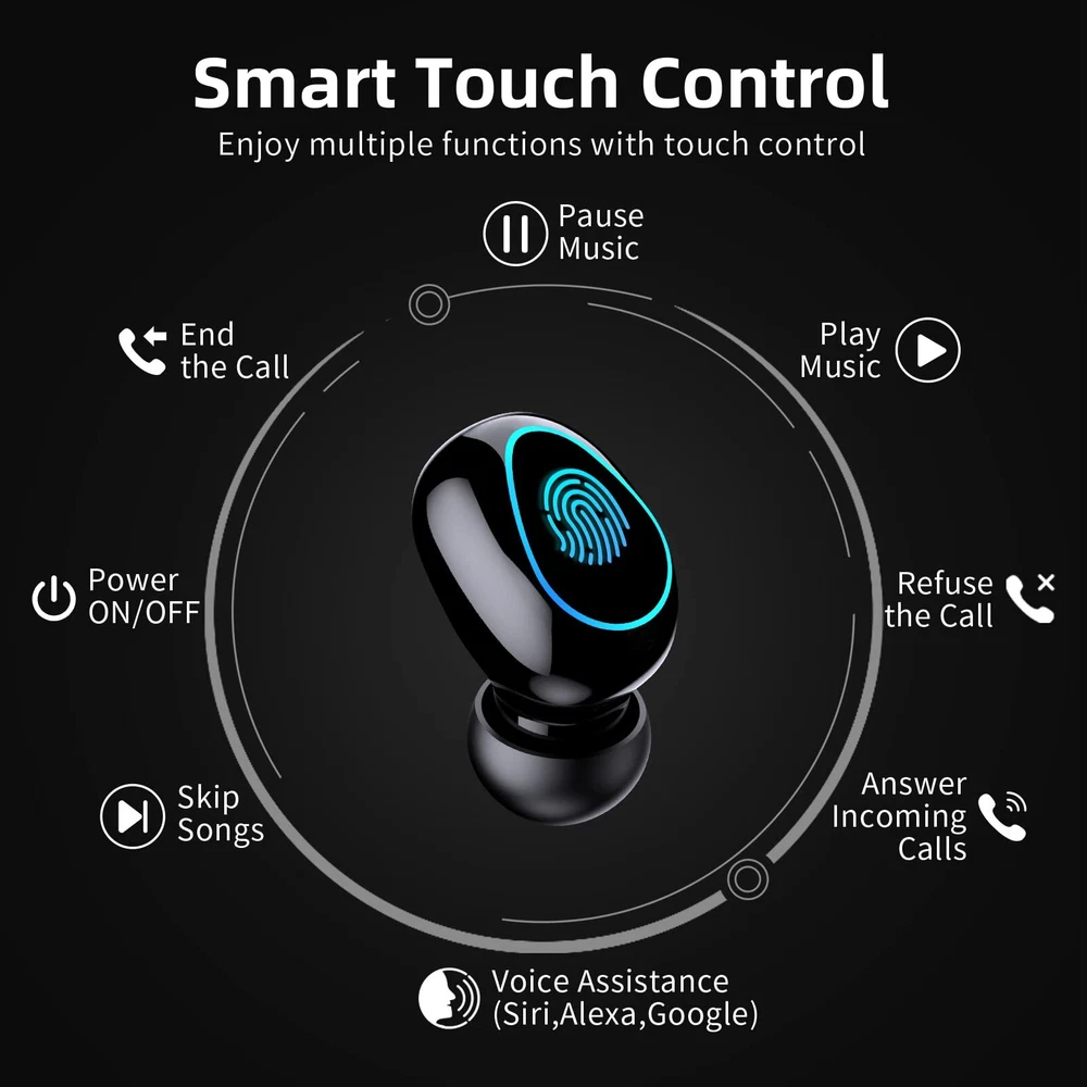 【Bluetooth 5.1 & One-Step Pairing 】The latest Bluetooth 5.1 with TWS technology on both bluetooth earbuds, provides faster pairing, stable connection and signal transmission (32ft no-obstacle range). Only need to take out two earbuds or any single earbud after you open Bluetooth function, they will open and connect automatically. Powerful Bluetooth 5.1 chip that perfectly matches tablets, laptops, iOS, and Android smartphones! 【IPX7 Waterproof Bluetooth Earbud】Wireless earphones are certified with IPX7 waterproof rating and nano-coating materials which prevent any splashes and water penetration.With ergonomics and sports design, it can be firmly fixed in the ear canal even during strenuous exercise. Very suitable for use during exercise. 【Hi-Fi Stereo Sound Quality】Wireless earbuds has the built-in high-quality audio chip and 10mm dynamic speakers for more delicate sound processing. Equipped with the latest CVC 8.0 noise reduction technology to give you a crystal clarity sound quality and 3D deep bass stereo, Making you feel personally on the scene of music during sports, running or hiking even in a loud environment. 【LED Display & 3500mAh Charging Case】Bluetooth earbuds Charging Case adopted LED battery display design, it'll indicate how much battery remaining in the charging case.about 5-6 hours continuous music playtime for a single full charge(only 1.5h charge time). Charging Case Equipped with 3500mAh Ultra Large Capacity battery , You can also use the charging case as a mobile power source to charge mobile phones or other mobile devices. 【Guarantee Return Policy & Package】3 months return policy provided. If for any reason you're not completely satisfied with our wireless Bluetooth earbuds, please don't hesitate to contact us. Package content: Earphones, Charging Case, Charging Cable, Ear Tips (S, M, L), User Manual