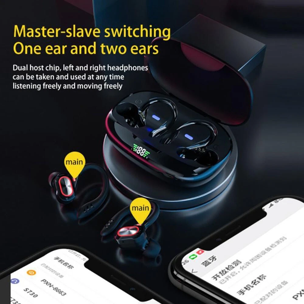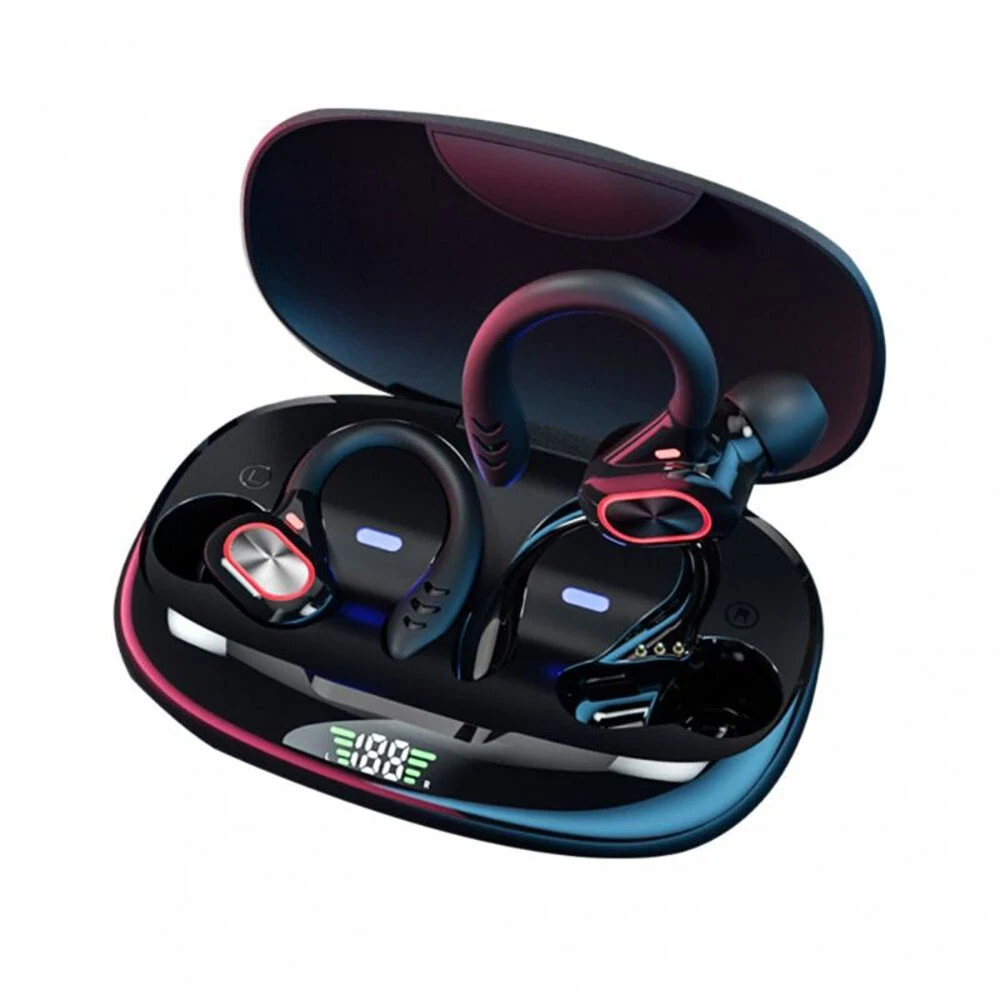 Features: -100% brand new and high-quality made. -Silicone Earhook for Sports,ensure your headphones fit comfortably in ear. -Bluetooth 5.2 chip technology and 10mm drivers let you experience crystal clear HD stereo sound and powerful bass. -It comes with charging box, easy to charge. LED Digital Power Display: show the battery level of the charging case and earbuds. -Just take the bluetooth headphone out of the charging box, open your bluetooth, connect with it. When you put it back, the earphones shut down and are recharging. -The headset could automatically power on and match the phone after picked up, eliminating the troublesome operation of manual startup and pairing. -Touch control technology: you can easily play/pause/skip music, answer/end/reject calls or activate voice assistant with simple-tap operating. -The built-in audio processing system eliminates noise and echo very well, making it ideal for listening or watching at work. -It provides you with wireless freedom and provides you with the most comfortable wearing experience. Specification: -Bluetooth version: Bluetooth 5.2 -Transmission distance: 10m -Charging box battery capacity: 800mAH -Listening time: About 4 hours (single use with full battery) -Charging time of headset: About 40 minutes -Charging time of charging box: about 1H -Frequency band/band: 2.4-2.485GHz -Maximum transmitted power: +2DBm -Color: Black, Gray, Red. Package Included: 2 X Wireless Bluetooth Headsets 1 X Charging Box 1 X Type C Charging Cable 2 X Pair of Ear cap 1 X Manual