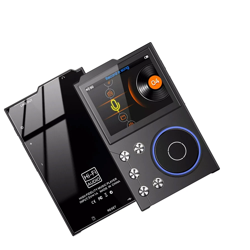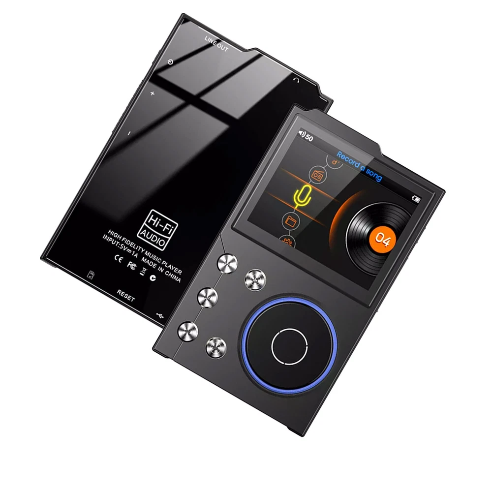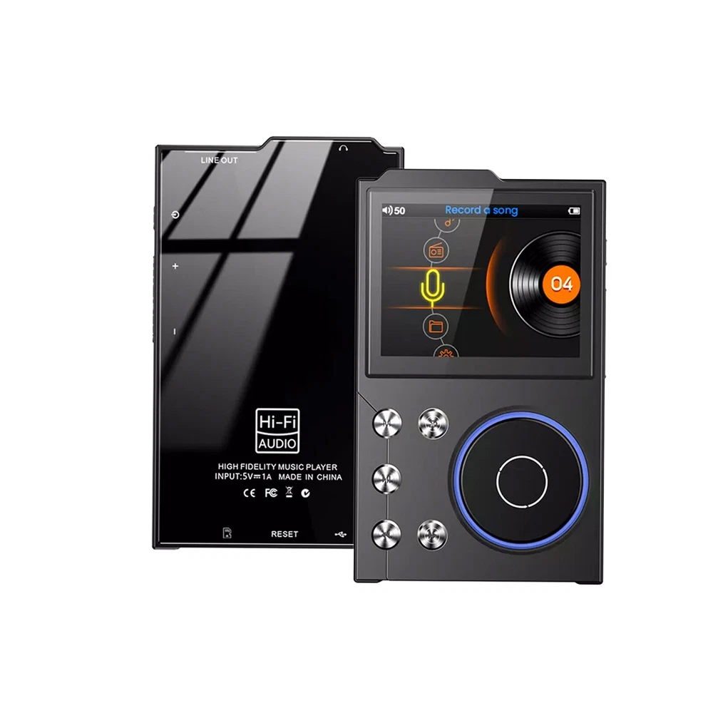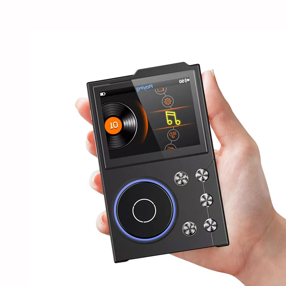 Features 【High Resolution Sound Quality Music Player】 This high resolution audio player has excellent sound quality with advanced DSD decoding technology to reduce distortion; the high resolution audio player captures the depth and breadth of each note. It is perfect for audiophiles to enjoy live music. (Warm reminder: the sound quality will be better with professional speakers or HiFi headphones.) 【HIGH RESOLUTION LOSSLESS AUDIO PLAYER】 The HIFI lossless MP3 player uses an advanced audio stereo DAC chip with a maximum sampling rate of 128-384 kHz/16-64 bit. [Long Playback Time and Expandable Large Memory】 With a built-in 1500mAh battery, you can enjoy up to 24 hours of uninterrupted high-resolution music at volume 30 and screen saver mode.Hi-Fi music player has a built-in capacity of 16GB, and you can also expand the storage space up to 128GB Micro SD card and enjoy the music library which is thousands of songs long. [Humanized Design] This digital music player features a 2.4-inch HD screen that is easy to navigate with the retro-designed scroll wheel. Control the main functions and volume intuitively with 1 finger. Line out and headphone out ports are flexible to use, including wired headphones or home audio systems, cars with auxiliary cables and amplifiers. 【Fashionable Craftsmanship】 The lossless music player is elegantly portable with a high-precision CNC aluminum alloy case. The unique scroll control wheel can quickly find menu files and is very responsive. The independent menu button and return button have a one-touch lock screen function, easy to operate. Specification Product Name: HiFi MP3 Player Product Model: HIFI-01 Operation mode: button + scroll wheel encoder Screen size: 2.4 inches Resolution: 240*320 Bluetooth version: 5.0 Memory capacity: 16GB built-in (self-contained) Memory Expansion: Maximum support 128GB TF card (not included) Audio format: MP3 WMA WAV APE FLAC ACC OGG DSD64 Recording format: MP3/WAV Image format: JPEG Charging time: 2 hours Charging port: Type-C Headphone jack: 3.5MM Battery capacity: 1500mAh high-density polymer lithium battery Playback time: about 24 hours (3.5MM headphone volume 30 screen saver to play lossless music) Playback Mode: Sequence,Random,Loop,Repeat Audio EQ: Rock, Heavy Metal, Pop, Bass, Classical, Customized sound effects Support System: Windows XP/win7/Vista/2K/ME/Linux9/Mac OS 10 Language Support: Chinese,Traditional,English,Korean,Japanese,French,German,Portuguese,Russian,German,Italian Body size: 97*60.4*13.9mm (L*W*T) Body material: metal Package Included 1* MP3 player (16GB) 1* Owner's Manual 1* Type-C cable Warm Notice 1. The TF card in the photo is not included! 2. According to the light color may vary! 3. Please allow a slight 1cm difference due to manual measurement! 4. Thank you for your understanding and concern, wish you have a pleasant shopping experience!