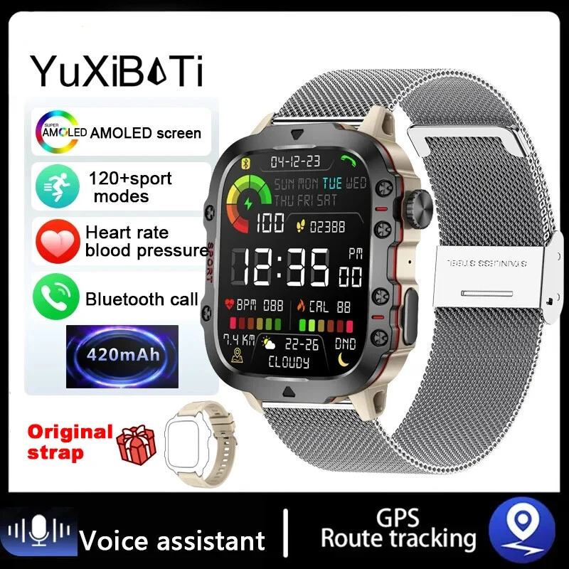 2024 New For Xiaomi Military Smart Watch Men IP68 5ATM Outdoor Sports Fitness Tracker Health Monitor 1.96" BT Call Smartwatch Parameter: Display: 1.96-inch HD Touch TP: full screen touch Buttons: 2 buttons with encoder Battery: 420mAh high voltage and large capacity Working time: 7-10 days Standby time: about 50 days Bluetooth: BLE5.2 APP:gloryFit System support: Android 4.4 or above, IOS 9.0 or above, Apple 5S or above Waterproof level: 3ATM Function: Continuous heart rate, one-click link, Bluetooth calling, true blood oxygen saturation, blood pressure monitoring, sleep monitoring, brightness adjustment, breathing training, voice assistant, raising hands and screen, information push, APP message reminder, more than 100 sports modes, weather Forecast, flashlight, clock display, alarm clock, SOS mini-game, calculator, female menstrual cycle, music playback, multi-function dial, custom wallpaper, sedentary reminder, do not disturb mode, search bracelet, remote camera, step counting, distance , calories, and more language: Watch languages: Chinese, English, Korean, Japanese, German, Spanish, French, Italian, Portuguese, Arabic, Polish, Russian, Indonesian, Turkish, Dutch, Czech, Traditional Chinese, Vietnamese APP languages: Ukrainian, Russian, Indonesian, Turkish, Hebrew, German, Italian, Czech, Slovak, Japanese, French, Polish, Thai, Simplified Chinese, Traditional Chinese, Romanian, English, Portuguese , Mongolian, Spanish, Vietnamese, Arabic, Korean Q:Why is the blood pressure value deviated from the sphygmomanometer? A:The deviation between the measurement value of the watch and the sphygmomanometer is determined by a variety of factors. The measurement site of the sphygmomanometer is in the radial artery, and the measurement site of the watch is the two main branches of the arteriole. Normaly, the aortic blood pressure measurement and the arteriole Blood pressure measurements will vary by three to forty; if you use a watch and a sphygmomanometer to measure at the same time, because the blood ?ows in the artery in the direction of the centrifuge, the sphygmomanometer measures the straps so that the lower part of your elbow is under pressure. Temporary blood cannot ?ow smoothly to the branch of the artery below, and the vascular tension is increased, which will make the upper and lower blood pressure measurement values more biased. Q:Why can't the watch receive the message push? A:Android phone settings1. Con?rm that the message push switch is enabled on the mobile client.2. The con?rmation message can be displayed normally in the mobile phone noti?cation bar. The watch message push is pushed by reading the mobile phone noti?cation bar message; if there is no message in the mobile phone noti?cation bar, the watch will not be able to receive the push(need to ?nd the noti?cation setting in the phone settings, open WeChat, QQ phone, SMS, noti?cation button of mobile client)3. Open the auxiliary function settings of the wristband client(see the auxiliary function in the settings on the phone, and open the auxiliary function settings of the wristband client) Apple phone settings:1. Con?rm that the message push switch is enabled on the mobile client.2. the con?rmation message can be displayed normally in the mobile phone noti?cation bar(need to ?nd the noti?cation settings in the phone settings, open WeChat, QQ phone, SMS, mobile phone client noti?cation switch) Q:Why does the pedometer not count steps when I have already started walking? A:To reduce errors, smart watch usually sets an initial value of 10, it will count steps when we walk more than 10 steps. The APP will show the real walking steps and start counting from step 10. Q:What application is used when connecting to a smart phone? A:The app is designed by the supplier. You can scan the QR code on the package or manual to download it when you get the item. Q:Why the device cannot boot or start up properly? A:Please charge your new device for at least 10 minutes or more before the first usage, this ensures normal device boot and optimal operation. For devices with removable batteries, ensure they are properly installed before charging. Q: Can not find device when pairing device? A:Please make sure the distance between phone and device less than 0.5m Please make sure the device is not under low battey.if there is still problem after 1.5hours charging,Please cantact us. Q:Can not connect the devicewith app? A:Some smart phone bluetooth service will be abnormal when reboot.Please reboot the smart phone for pairing device. Q:Why the android mobile disconnect? A:Android mobile phone system memory management will be forced to turn off the background app,you need to turn off the power saving mode or pull the app into the ayatem housekeeping green background inside,app will not be forced to close.app must be running in the background,bluetooth will not automatically disconnect. Q: Why couldn’t I connect the Bluetooth? A:1. Please download the app firstly 2. Search Bluetooth name on your APP and then connect it. 3. You can see request to connect on the phone, click “pair. If you had connected the Bluetooth before, please clear all your phone's Bluetooth devices. Q:Is the watch waterproof? A: Smart Watch is splash-proof and sweat-proof, so it is ok while you are doing sports . But you can’t swim with it. (please note: it does not support the brewing hot water, hot bath, and water vapor. Please avoid using and storing the device at the place of high temperature & high humidity.)