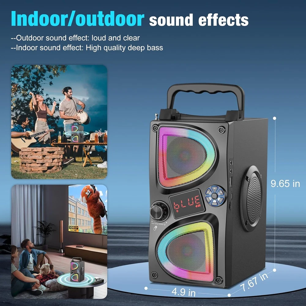 Speaker Maximum Output Power 6E+1 Watts Frequency Response 8E+1 Hz Connectivity Technology Auxiliary/Bluetooth/USB/Wireless Audio Output Mode Stereo Immersive Audio Experience: This SUPNIU Bluetooth speaker delivers a powerful 60W (peak) output with a cutting-edge 4-driver configuration, including 2 woofers and 2 tweeters, for superior sound projection, unparalleled clarity, and depth, ensuring your music, movies, and more come to life like never before. Long-Lasting Portability: Equipped with the latest Bluetooth 5.0 technology for seamless connectivity and a 4000mAh battery, this portable speaker offers up to 15 hours of playtime, making it the perfect companion for outdoor adventures, parties, or any occasion where you need to take your music on the go. Dazzling Light Show: Elevate your parties with the speaker's stunning light show feature, where vibrant colors dance and pulse to the rhythm of the music, creating an electrifying atmosphere that will energize your gatherings. Versatile Connectivity: With Bluetooth, USB, TF card, and AUX input options, this versatile speaker offers multiple ways to play your favorite tunes, ensuring you can enjoy your music anytime, anywhere, from any compatible device. Thoughtful Design: The integrated display screen showcases the remaining battery level, so you're never caught off guard when the power runs low, while the included remote control and karaoke microphone add convenience and fun to your music experience.