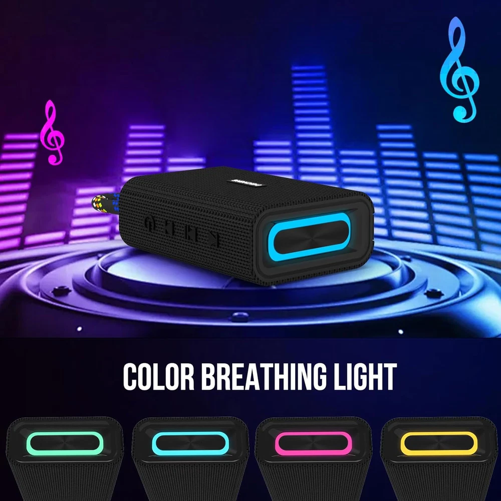 Store New Arrivals Add to Favorite View Feedback Contact Bluetooth Speaker, Portable Wireless Bluetooth Speakers with Loud Stereo Sound, Deep Bass, IPX5 Waterproof Speaker, Bluetooth 5.3, RGB Colorful Lights, TWS Pairing for Party, Home, Outdoors, Travel Description Item model number WP-03A Number of Items 1 Power Source Battery Powered Control Method Touch Warranty Type Limited Is Electric Yes Compatible Devices Laptop, Tablet, Smartphone Battery Life 6 Hours Includes MP3 player? No Bluetooth Range 33 Feet Controller Type Button Battery Capacity 1000 Milliamp Hours Connectivity Protocol Bluetooth Wireless Communication Technology Bluetooth 5.3 Number of Power Levels 5 Material Plastic Vehicle Service Type Car Package Type FFP Model Name WP-03A Number of Batteries 1 Lithium Ion batteries required. (included) Recommended Uses For Product Travel, Beach, Party, Outdoor, Home, Camping, Hiking Specific Uses For Product Travel, Party, Home Theatre Included Components Charger Subwoofer Connectivity Technology Wireless Country of Origin China Speaker Maximum Output Power 5 Watts Water Resistance Level Waterproof Item Weight 7.4 ounces Connectivity Technology Bluetooth, Auxiliary, TF Card Charging Time 2 Hours Special Feature Bass Boost, Hi Res Audio, Waterproof, LED Light, Built In Microphone Mounting Type Freestanding Color Black Frequency Response 20 KHz Speaker Type Soundbar Maximum Range 33 Feet Is Waterproof True Batteries 1 Lithium Ion batteries required. (included) Audio Output Mode Stereo Product Dimensions 5.78"D x 3.46"W x 2.04"H 【Ultimate Sound Experience】Featuring advanced sound technology, this bluetooth speaker unleashes loud, room-filling volume and crystal-clear sound with impressive bass from high-performance drivers, and 360° Omni-directional sound delivers stereo sound to ensure everyone in the room gets a front-row experience of surging music, flashing lights, and party-ready sound. 【Rugged Design & Weather Resistant】This portable speaker is designed to handle harsh environments and severe weather conditions, with a durable design that won't be easily damaged by drops and an IPX5 waterproof rating to protect against spills and splashes. Ideal for outdoor activities, this waterproof speaker is perfect for parties, beach, camping or outdoor use. 【Bluetooth 5.3 & Dual Pairing】The wireless speakers have advanced Bluetooth 5.3 technology with a connection range of up to 33 feet, and also enables true wireless stereo dual pairing, easily pair two portable speakers to instantly experience dual stereo surround sound, achieving 360-degree dual-enhanced stereo sound, unlocking high-quality music texture and immersing you in your music. 【Dazzling Dynamic Lights】colorful lighted Bluetooth speaker offers a variety of RGB dynamic lighting modes, just press the light button, a variety of colors for you to choose. Choose different lights according to your preference in the party, the louder the volume, the more obvious the lighting effect, making the party atmosphere more enthusiastic. 【Ideal Gift Choices】Package includes Bluetooth speakers, Type-C charging cable, silicone lanyard and instruction manual. This portable bluetooth speaker's LED rhythm lights and vibrant bass can easily set the mood for holiday parties, making it an ideal holiday gift, birthday surprise and Christmas gift for friends or family. Product Description Hi-Fi Stereo Sound Quality Bluetooth speakers can output 5W stereo sound, loud treble and shocking bass fill the room with balanced sound effects, multiple changes of colorful lights make the atmosphere hot, it is a good helper for family gatherings and parties, and a perfect partner for playing games, listening to music and watching movies. Compact & Portable This portable bluetooth speaker delivers loud and clear sound and is compact enough to comfortably hold in your hand or slip into a backpack, the rugged design makes it perfect for use when traveling, camping and hiking. Universal compatibility The wireless speaker is compatible with most Bluetooth devices, connects to ios and Android smartphones, computers, tablets, MP3 players and more in seconds and maintains a stable connection. Built-in microphone hands-free function, won't miss any incoming calls. Simple Function Keys Portable bluetooth speakers has four buttons, which are: Next song, Start/Pause, next song, On key. Click on the on key to switch between different lights to create a hot atmosphere. TWS Dual Pairing Our speakers use TWS technology to pair two bluetooth speakers with your Bluetooth device at the same time, delivering 360° stereo sound and playing the same music at double the volume in perfect synchronization, creating an immersive listening experience. IPX5 Waterproof Waterproof speakers are splash, rain, dust, and sand resistant, making them ideal for use at beaches, poolside, parks, campgrounds, etc. IPX5 rated speakers can withstand light water spray, rain, and splashes, but cannot be partially or fully submerged in water. ABOUT US We offer the best prices around on high quality products. Our E-store includes media such as books, movies, music and games while offering electronics, toys, sporting apparel, clothing, tools, general home, garden items and more. SHIPPING We are always working hard to ensure your package arrives as soon as possible. Please understand that some factors like weather, high postal traffic, and the performance of shipping companies are outside of our control. We offer free shipping to the lower 48 states and ship within 2 business days of payment, usually sooner. We do not accept P.O. Boxes. Please provide a physical address. For shipping outside of the continental USA, we only use eBay's Global Shipping Program.The item is shipped to KY and then sent to the rest of the world. International customers are responsible for all duties and taxes. Continue to check out in order to calculate costs for shipping the item to your country. Messages regardin