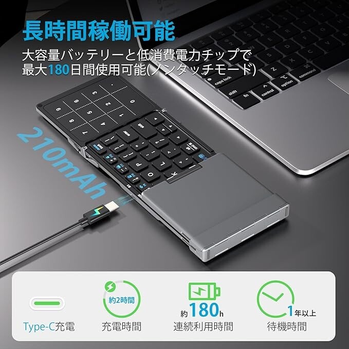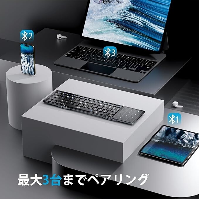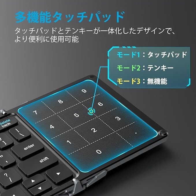 This item includes applicable import fees. You won't pay anything extra after checkout. Folding Keyboard Bluetooth Wireless Folding US Layout iOS/Windows/Android New Free Expedited Japanese Instruction Manual Folding Keyboard Bluetooth Wireless Folding Mobile Keyboard Multi-Function with Touchpad/Numeric Keypad US Layout Multi-Pairing Type-C Charging Compact for Smartphones/iPads/iPhones with Stand Compatible with iOS/Windows/Android BK18 (Gray Black) [Multifunctional touchpad] This keyboard has an integrated touchpad and numeric keypad design, and you can easily switch modes with the combination of the "fn+space" key. There is no need to carry a mouse or numeric keypad separately, and this single keyboard can meet various input needs. The switching is smooth and the operation is easy, making it suitable for those who frequently perform gesture operations and data entry. ▲The touchpad has three modes: touchpad mode, numeric keypad mode, and off mode (no function). [Small and lightweight foldable keyboard] It has a thin body of 12 mm, weighs 220 g, and when folded, it measures 185 x 95 x 17 mm (the size of an iPhone). It can be easily stored in a pocket, backpack, or handbag and can be used at any time. It is an ideal keyboard for those who work remotely or go out frequently. ▲Please note: This keyboard is a US layout, not a JIS layout. Please note. [Can be paired with up to 3 devices] Compatible with iOS, iPadOS, Android, Windows, and Mac devices equipped with Bluetooth function (excluding some non-compatible devices), and can be paired with up to 3 devices. Switching is easy and it can be used in a variety of situations. Up to three devices can be used more smoothly without the hassle of re-pairing every time. [Type-C rechargeable & long-lasting operation] Type-C rechargeable, can be fully charged in just 2 hours. It has a built-in 210mAh large-capacity battery and can be used continuously for up to 180 hours (when the touchpad is switched to non-function mode). In addition, if there is no operation for 30 minutes, it will automatically enter sleep mode. Sleep mode will return after 2 to 3 seconds by pressing any key. [Excellent durability] The surface is made of engineering-level ABS material, which is anti-slip, anti-fingerprint, and anti-scratch.