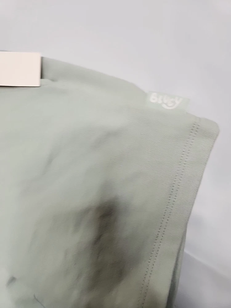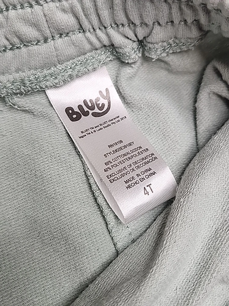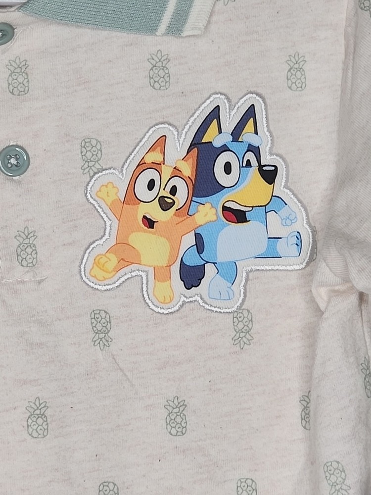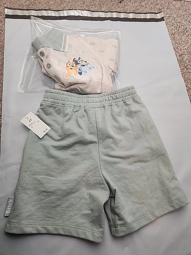 Nwt collared tshirt bluey embroidered logo on chest , cream and sage green in color , buttons , sweatpant material elastic waist shorts in green with pockets . see all pictures for details nwt