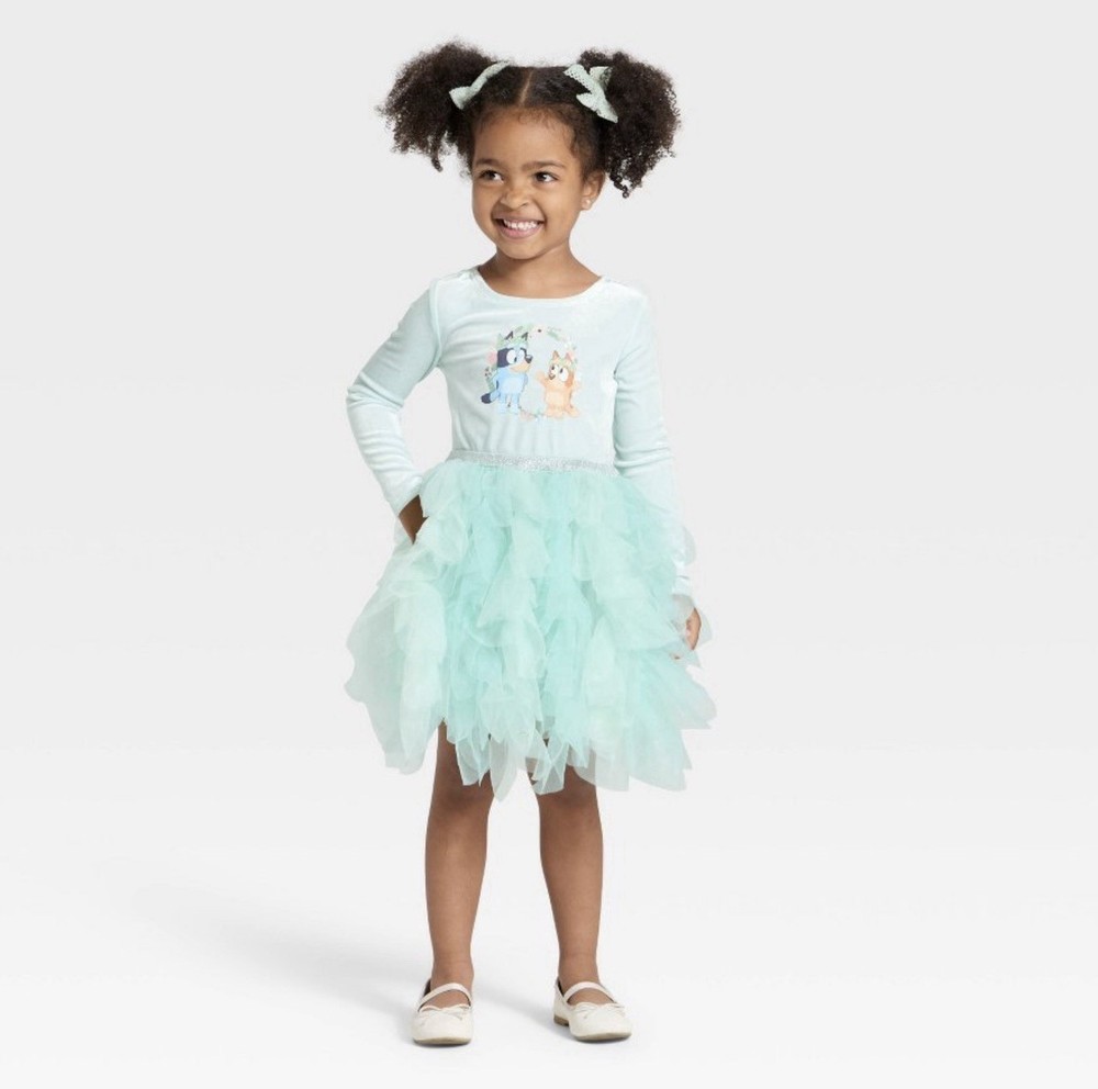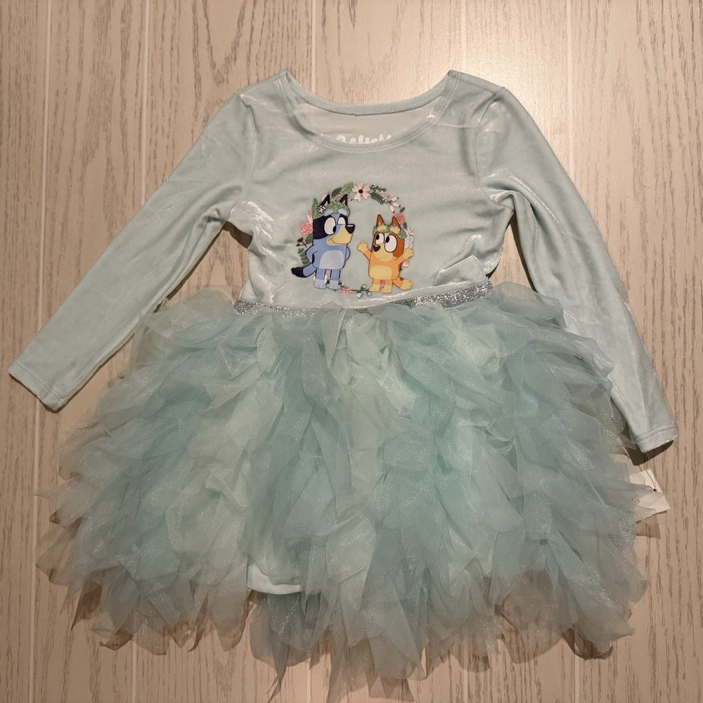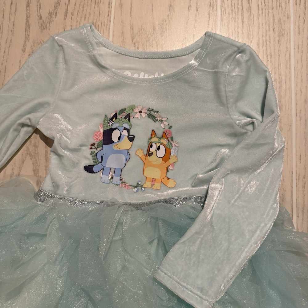 Bring a little magic to your little one’s wardrobe with this adorable Bluey ballerina dress! This dress features a soft velour-style bodice with a cute Bluey character graphic and a layered tulle tutu skirt that gives it that perfect ballerina look. The long sleeves make it great for cooler weather, while the lightweight and stretchy fabric keeps it comfortable for all-day wear. Perfect for birthdays, dress-up, parties, or everyday play—this is a must-have for any Bluey fan! Details: • Size: 2T • Condition: New With Tags • Color: Light Blue • Velour-feel bodice with Bluey graphic • Layered tulle tutu skirt with glitter waistband • Long sleeves, pullover style • Soft, comfortable, and lightweight Ships fast. Be sure to check out my store for more kids’ clothing.