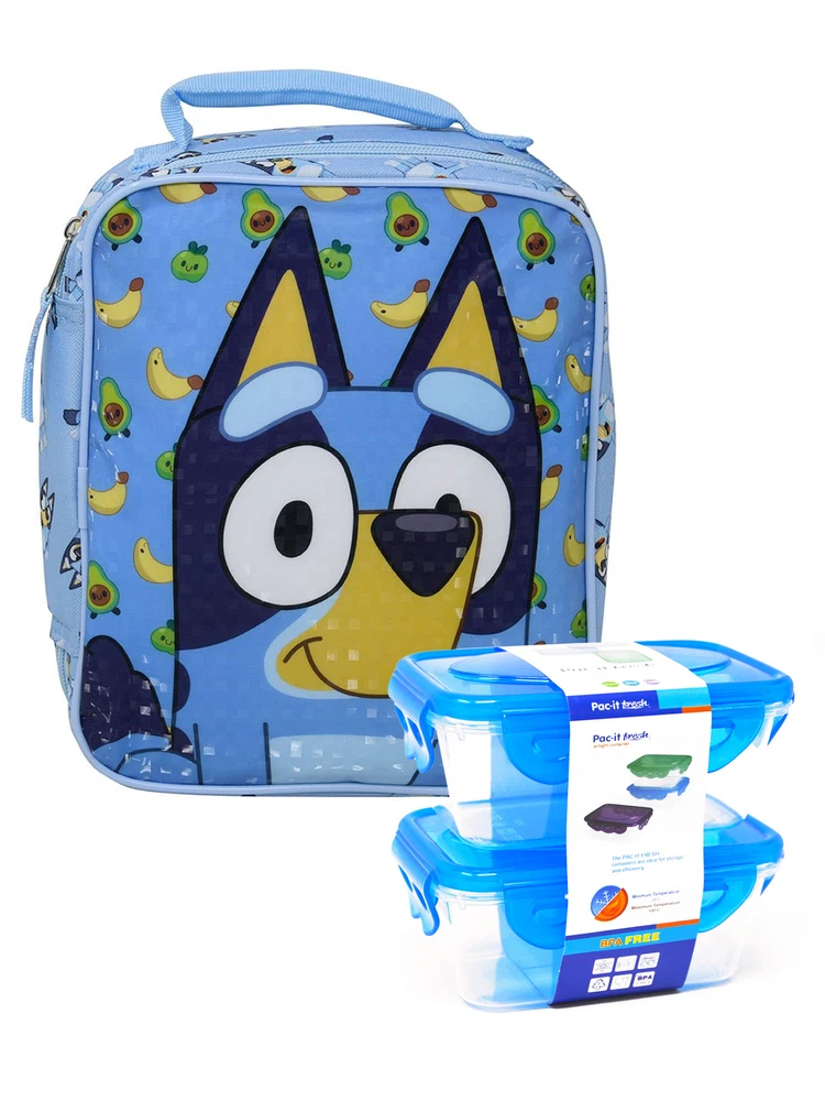 Bluey Insulated Lunch Bag & 2-Piece Food Container Set Boys Girls Reusable