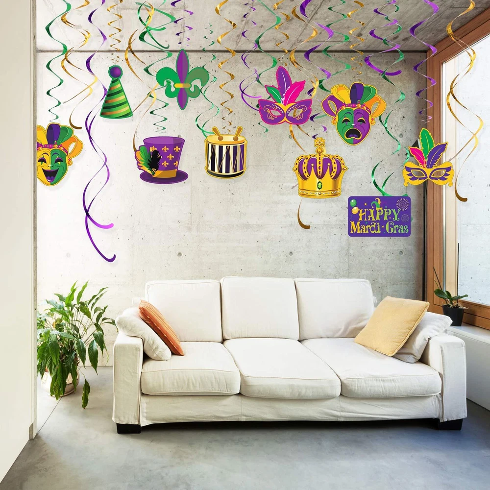 Blulu Mardi Gras Party Hanging Swirls Party Ceiling Decorations Mardi Gras Decorations for Party Mardi Gras Theme Celebration Baby Shower Birthday Party Supplies Event Supplies 30ct Feature: Good quality and not easy to break, these party favors will be applied to your next Mardi Gras party event. Funny Mardi Gras party background decorations for Mardi Gras theme celebration, baby shower, birthday, festivals or other special occasions. You can decorate your mardi gras party with these gold, purple and green hanging swirls to make a huge hit. Package includes: 10 x Foil swirl decorations with cutouts 20 x Double spiral decorations without cutout Fun and easy to use: Gold, purple and green swirls with Mardi Gras themed cutouts in the shape of masquerade masks, crowns and fleur de lis cutouts, colorful and festive and added a lot to the decorations, an easy way to add some fun and color to any party. Specifications: Size: each Mardi Gras cutouts cards approx. 7.8 x 7.8 inch Color: gold, purple and green Quantity: 30 pieces Notes: Due to computer resolution, sunlight, indoor lights, and other factors, there might be a little color difference. Package includes: there are 10 different characters in this set, including 30 pieces foil swirl decorations, 10 foil swirl decorations with cutouts, 20 double spiral decorations without cutouts; These Mardi Gras party foil swirl decorations feature metallic foil swirls with double-sided cardstock Size: each Mardi Gras cutouts cards approx. 7.8 x 7.8 inch; Each swirl can extend to approx 28 - 36 inch in length; You can hang it anywhere you like with the hook on the top, hanging the animal swirls from the ceiling, window, mantel, overhangs, doorway, archway, branches in trees or outdoor events Sturdy material: quality card paper, not flimsy and easily bent, double-sided printed, beautiful party swirl decorations and Mardi Gras adorable styles; These Mardi Gras party hanging swirls are durable enough to be applied for many times in different party occasions Wide application: suitable for Mardi Gras inspired party, the bright color match for Mardi Gras will make you an impressive party, well made decoration kit for home decoration or special occasions, give your home party a special touch; You can use one package to be a party centerpiece Cute design: swirl decorations feature gold, purple and green swirl decorations with Mardi Gras themed cutouts in the shape of masquerade masks, crowns and fleur de lis, etc., various cute shapes will make your party more special and impress your guests young and old alike Shipping from the USA All of our products are shipped from the USA, ensuring quick delivery to your destination. Payment We offer the following payment methods: PayPal, credit card, bank transfer, and eBay's secure payment system. Free Shipping & Free Returns Shipping within the USA is FREE. Additionally, any return is absolutely free for you. Risk-Free Purchase You have the option to return an item within 30 days without any justification. We cover the return shipping costs! Fast Shipping We ship immediately upon receipt of payment. Generally, the package is delivered within 2-3 days in the USA. If it takes longer, we will contact you. Quality and Costs Made in Europe, USA, China No customs fees or additional charges Total satisfaction guarantee Invoice with declared VAT available upon request in .pdf format Feedback Your feedback is very important to us. After you pay for your purchase, you will automatically receive positive feedback from us.