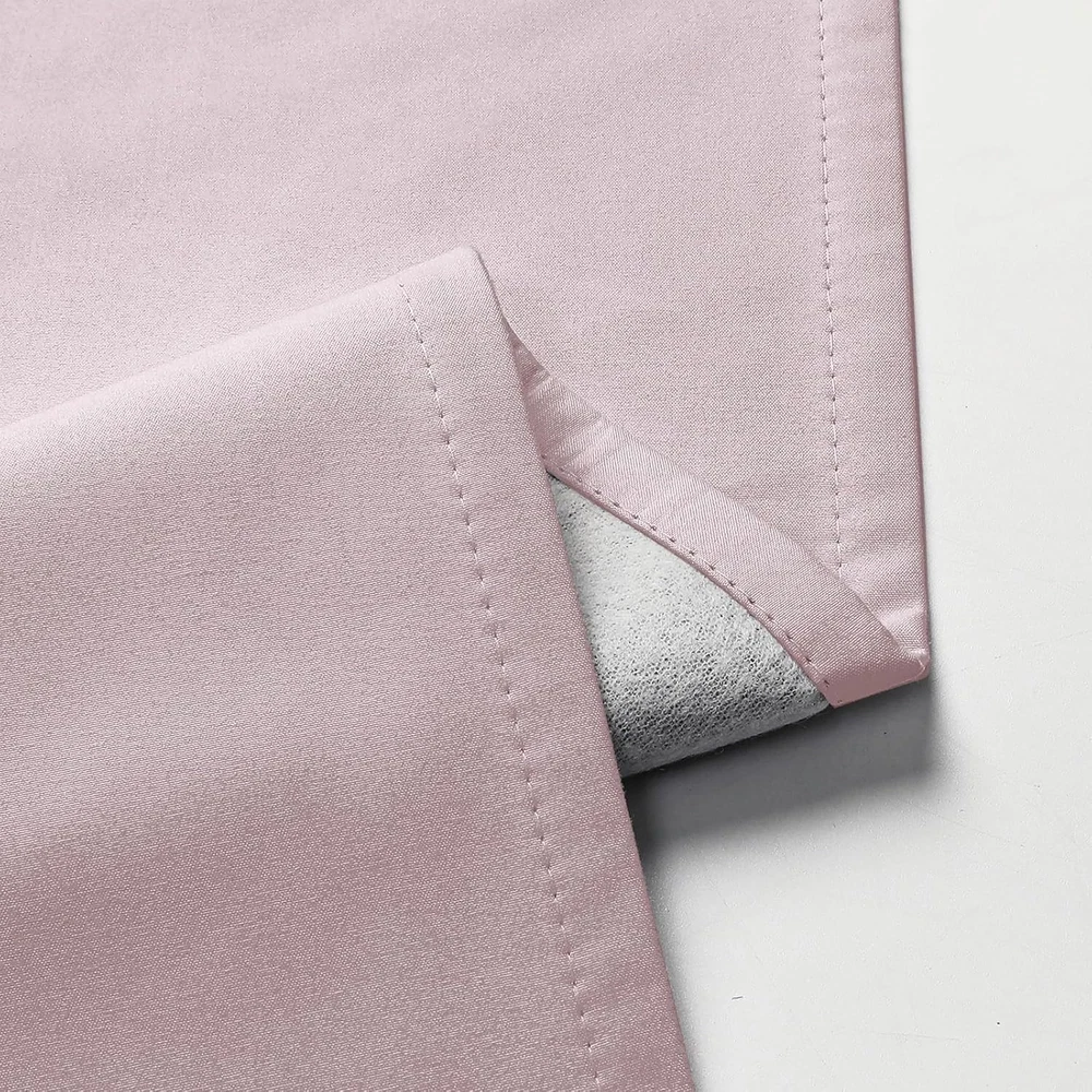 The Blush Blackout Curtains are a stylish and practical addition to any bedroom. These 84-inch length curtains come in a set of 2 panels, each measuring 38 inches wide. The solid blush pink color and grommet heading add a touch of elegance to the room. Made of polyester, these curtains are not only beautiful but also blackout, providing privacy and blocking out light for a comfortable sleep environment. Whether your style is casual or you're looking to create a cozy atmosphere, these curtains are sure to meet your needs.