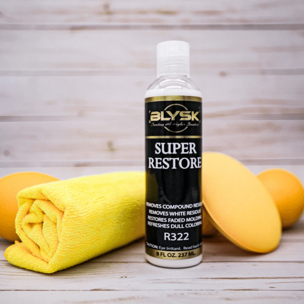 Blysk Super Restore Trim and Plastic Super Restorer - Protective Coating BLYSK Super Restore Trim & Plastic Restorer, Microfiber Towel & Foam Applicator Pad Blysk Super Restore 8oz. Trim and Plastic Super Restorer is a one-step cream that cleans, beautifies and protects all color exterior trim. Use to remove old wax and white compound residue from moldings, bumpers, door handles, guards, etc. Bring new life to faded trim without paint or dyes. Our Blysk Super Restore 8oz. Trim and Plastic Super Restorer is a water-based polymer emulsion with citrus cleaners. Our specially formulated ingredients provide your vehicle with a protective coat that repels the harshest elements such as rain, salt, and dirt to keep your car glowing for weeks. Blysk Super Restore 8oz. Trim and Plastic Super Restorer helps to prevent premature aging, cracking, and fading. Features of Blysk Super Restore 8oz. Trim and Plastic Super Restorer: SAFE FOR ALL TRIM COLORS - BLYSK Super Restore beautifies and protects ALL color exterior trim that instantly leaves deep rich color without using paint or dyes. FINISH - the advanced formula leaves no residue and finish is dry to the touch without transfer. SCENT - Super Restore has a pleasant citrus scent that is characterized by its zesty and fresh notes. SURFACE - This water-based polymer wonderfully rejuvenates surfaces that brings new life to faded trims. WHAT IS INCLUDED - Package includes BLYSK Super Restore 8oz, FREE microfiber towel and FREE foam applicator pad. Blysk Super Restore Trim and Plastic Super Restorer - Protective Coating BLYSK Super Restore Trim & Plastic Restorer, Microfiber Towel & Foam Applicator Pad Blysk Super Restore 8oz. Trim and Plastic Super Restorer is a one-step cream that cleans, beautifies and protects all color exterior trim. Use to remove old wax and white compound residue from moldings, bumpers, door handles, guards, etc. Bring new life to faded trim without paint or dyes. Our Blysk Super Restore 8oz. Trim and Plastic Super Restorer is a water-based polymer emulsion with citrus cleaners. Our specially formulated ingredients provide your vehicle with a protective coat that repels the harshest elements such as rain, salt, and dirt to keep your car glowing for weeks. Blysk Super Restore 8oz. Trim and Plastic Super Restorer helps to prevent premature aging, cracking, and fading. Features of Blysk Super Restore 8oz. Trim and Plastic Super Restorer: SAFE FOR ALL TRIM COLORS - BLYSK Super Restore beautifies and protects ALL color exterior trim that instantly leaves deep rich color without using paint or dyes. FINISH - the advanced formula leaves no residue and finish is dry to the touch without transfer. SCENT - Super Restore has a pleasant citrus scent that is characterized by its zesty and fresh notes. SURFACE - This water-based polymer wonderfully rejuvenates surfaces that brings new life to faded trims. WHAT IS INCLUDED - Package includes BLYSK Super Restore 8oz, FREE microfiber towel and FREE foam applicator pad. × × × × × × × × Shipping info Click the Shipping & Payments tab above the listing description for more info FREE Shipping Click the Shipping & Payments tab above the listing description for more info! Additional delivery notes PICK UP OPTION Sorry, our items are NOT available for pick-up. PAYMENT Immediate payment is required upon selecting "Buy It Now" or upon checking out through the cart. We accept payment via U.S. PayPal accounts and all Major Credit Cards, Debit Cards & Google Pay. We are legally required to collect sales tax in those states and localities where we maintain a physical presence (nexus). The applicable amount of sales tax charged to an order will be calculated based on the shipment destination's state and local sales tax laws. Thank you for shopping with us on eBay! Additional Information No additional information at this time Ask seller a question You might also like Menzerna Power Lock Ultimate Protection - Long Lasting Car Polish Menzerna Power Protect Ultra 2in1 - High-gloss Polish Finish & Wax Menzerna Sealing Wax Protection Blysk Automotive Cover Plastic sheeting 16' X 350' Contact To contact our Customer Service Team, simply click the button here and our Customer Service team will be happy to assist. Ask seller a question © Maazzo Shipping & Payments Shipping is FREE for this item Payment Accepted Payment Methods Immediate payment is required upon selecting "Buy It Now" or upon checking out through the cart. We accept payment via U.S. PayPal accounts and all Major Credit Cards, Debit Cards & Google Pay. We are legally required to collect sales tax in those states and localities where we maintain a physical presence (nexus). The applicable amount of sales tax charged to an order will be calculated based on the shipment destination's state and local sales tax laws. Thank you for shopping with us on eBay! Returns Returns are accepted Items must be returned within 30 days of the auction ending Buyer will pay for return shipping. eBay integration by