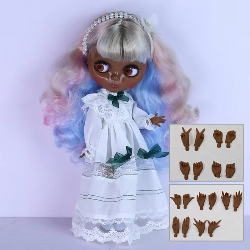 Blythe Doll with White Dress Shoes Super Black Skin 4 Colors Eyes BJD Toy Puppet There are just Limited quantity available ! Get yours NOW before we run out!!! Step into a world of creativity and magic with our stunning 12-inch Blythe doll! Perfect for collectors and doll enthusiasts, this Blythe doll is ready to captivate hearts with her unique charm and endless possibilities for customization. Features: ✨ Expressive Eyes: Four different eye colors and positions with a simple pull of a string, reflecting her many moods and styles. 🎀 Chic Wardrobe: Dressed in a stylish outfit, she’s ready to mix and match with your favorite fashion pieces. 👗 Customizable Beauty: Change her hair, makeup, and style to create a doll that’s uniquely yours. 🌈 Premium Quality: Crafted from durable, high-quality materials to ensure she stands the test of time. 📏 Perfect Size: At 12 inches tall, she's the ideal size for both play and display. Why You'll Love Our 12" Blythe Doll: Endless Creativity: Perfect for photography, crafting, and artistic projects, she’s a blank canvas for your imagination. Community Connection: Join a worldwide network of Blythe enthusiasts who share your passion and creativity. Unique Gift Idea: A thoughtful and personalized gift for birthdays, holidays, or any special occasion, sure to delight both children and adults. Bring home the magic of the 12" Blythe doll today and dive into a world where imagination knows no bounds. Embrace the charm, creativity, and joy that only a Blythe doll can offer. Order now and let the adventures begin! Set - 12" Blythe joint body doll with Beauty hair + White Dress + Shoes and Hair accessory.