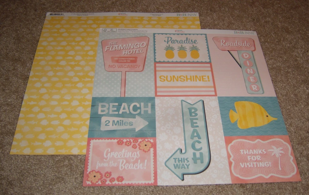 Bo Bunny 12x12 Double-Sided Paper Lot of Twelve ~ Tropical Escape to Paradise. Medium Cardstock Weight Papers. Lot includes two each of six designs. Payment: I accept paypal only. Please pay within seven days of completion of first bid as to give you time to complete other auctions. Shipping: Item with highest shipping will be applied. Each additional eligible item will be charged $1.00. Shipping discounts will be higher for papers and paper pads. Any shipping paid above my cost to ship will be refunded. I offer combined shipping when paid on one invoice. please use your cart. Any questions, please contact me through Ebay. Thank you for visiting.....!