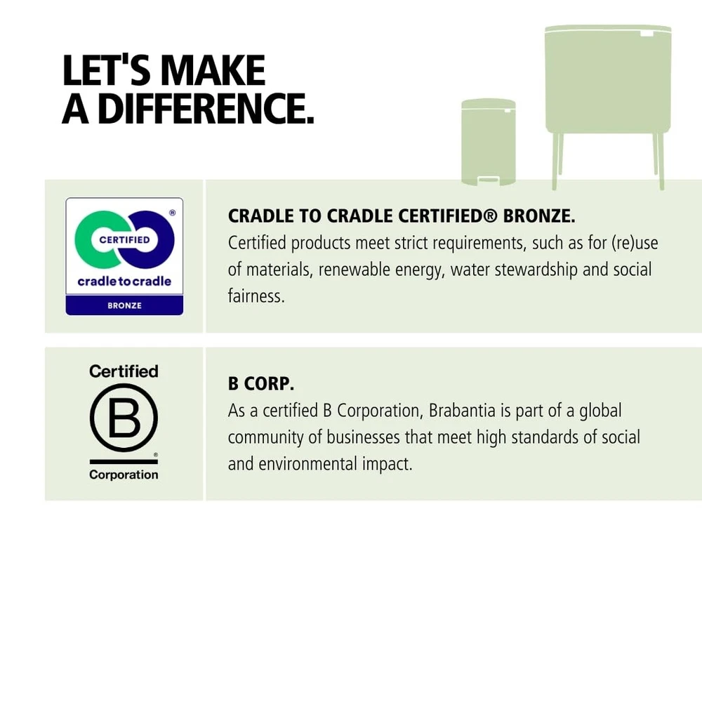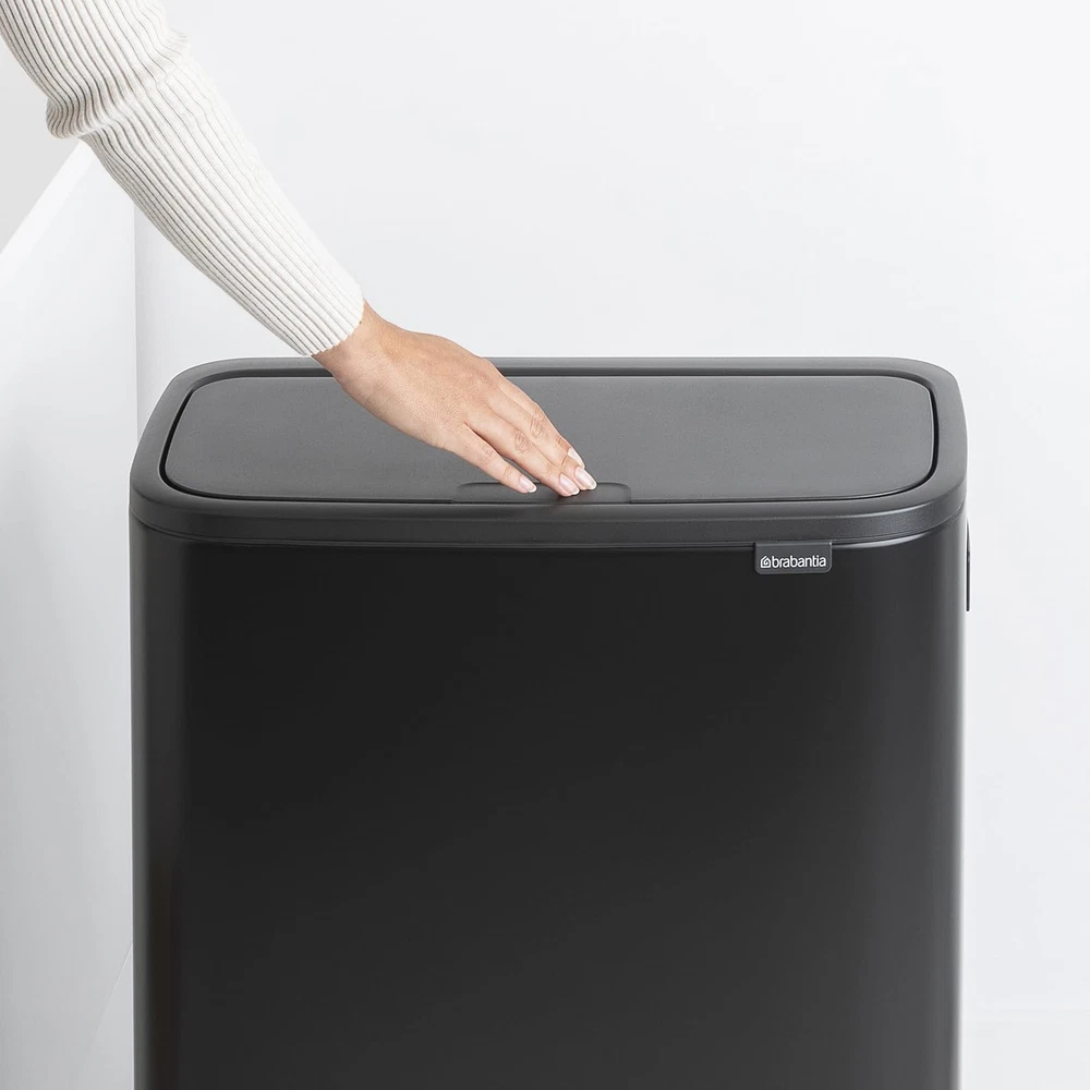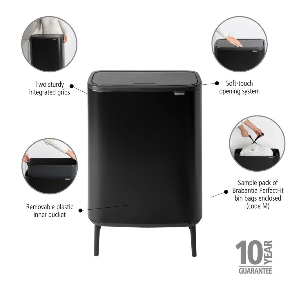 Looking for a beautiful solution for waste separation? This XXL Bo Hi Touch Top Trash Can (16 Gal) has a beautiful design plus all you need for discreet trash separation at home. It opens at the lightest touch, fits perfectly against a wall, and is very stable thanks to the adjustable non-skid legs. Recycling - The stylish Bo Hi Touch Trash Can offers a large compartment (16 gallons), making it perfect for a busy kitchen, Use with complimentary trash bags (code M), sample pack is enclosed Easy to clean - The click-on legs offer a perfect working height. Combined with a removable compartment, making it effortless to maintain hygiene Soft-touch opening system - Gentle opening and stay-open lid ensuring easy use Dimensions: H32.1 x W21.5 x D12.3 inches High-Quality Assurance - Rest easy knowing that this product adheres to high-quality standards, We back it with a 10-year guarantee and service for any unexpected issues