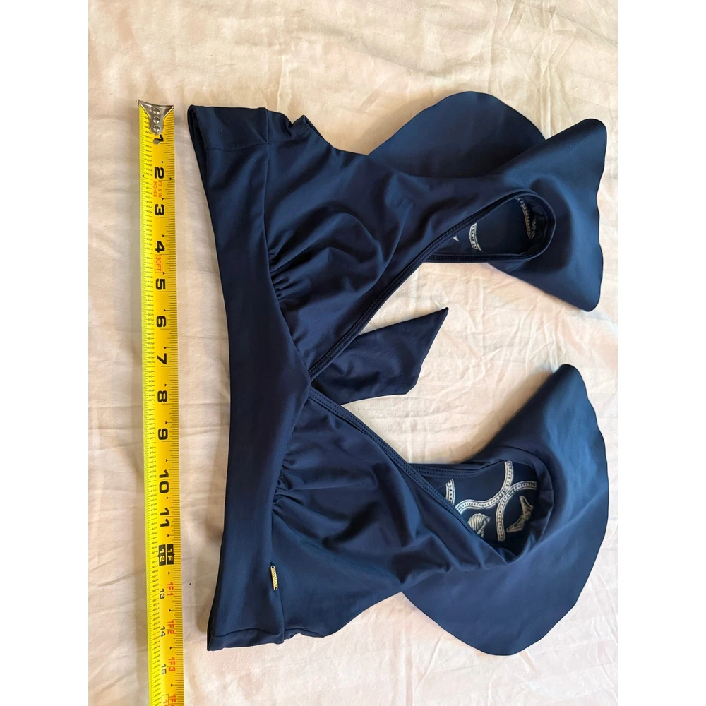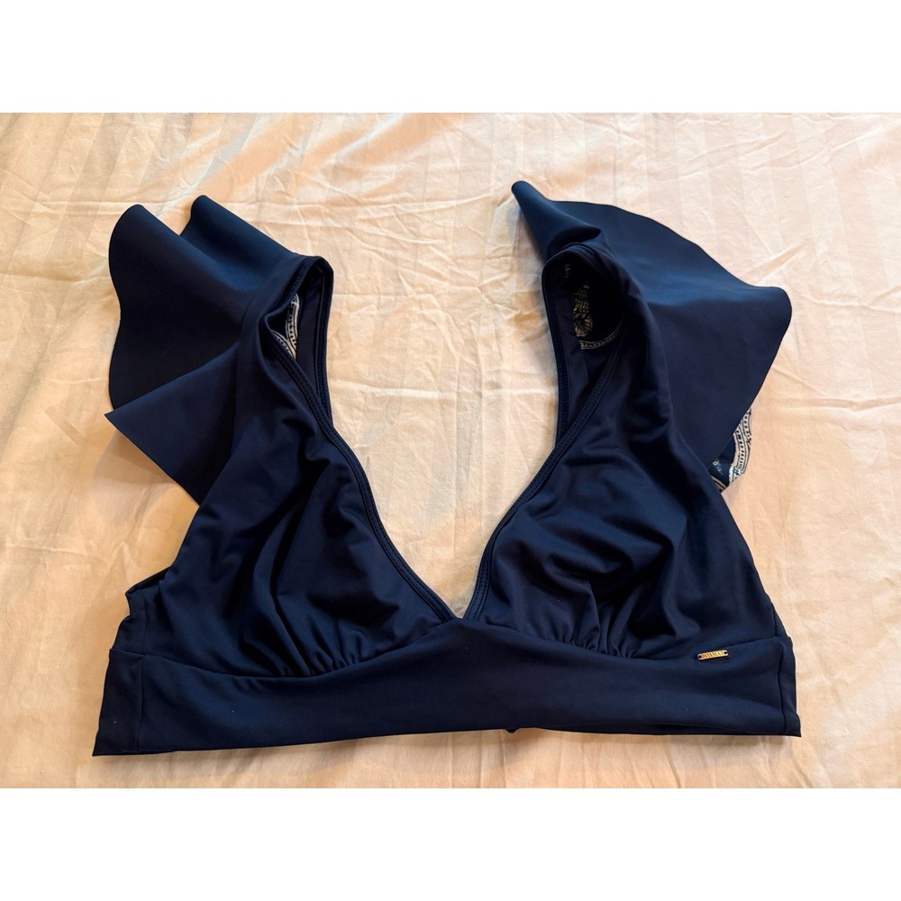 Boamar Fina Ruffled Reversible Bikini Top From Anthropologie Size medium (no size tag) Euc no flaws Polyester Ruffled straps Deep v-neck Back tie Hand wash Imported