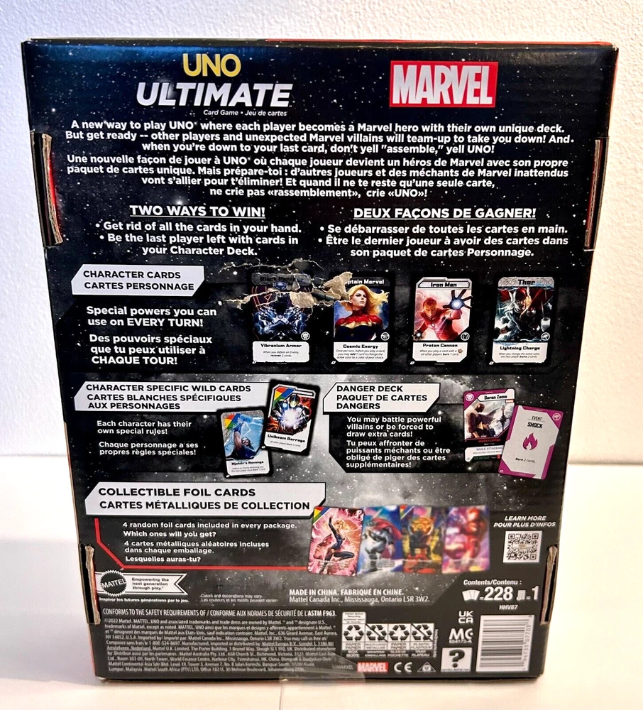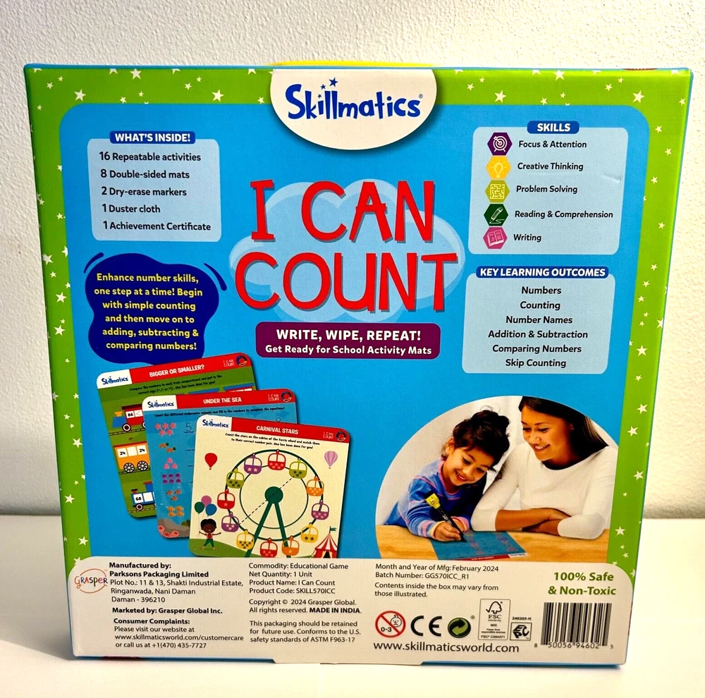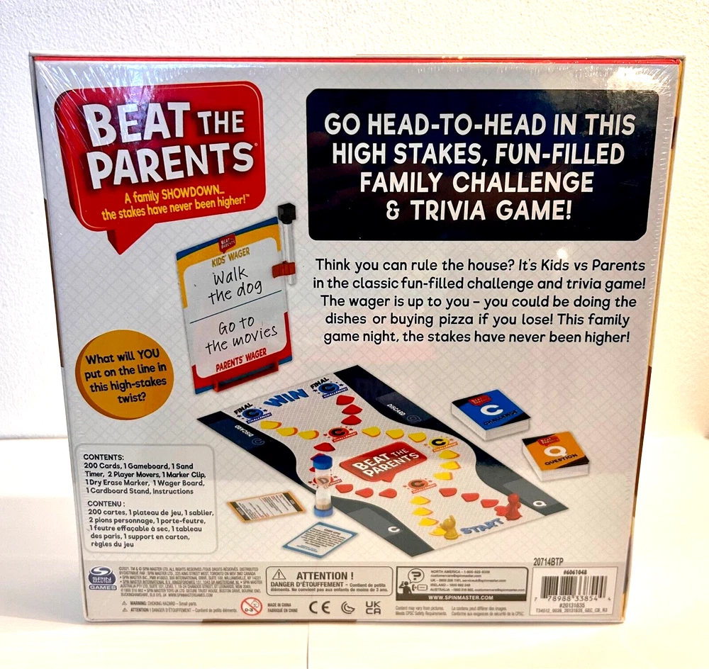 This exciting board game bundle has something for players of all ages! ($80.00 Value) It features a variety of game types, including card games, counting games, and trivia games with a minimum of 2 players. The bundle includes popular brands such as Mattel, Spin Master, Cards Against Humanity, and Skillmatics, making it a fun and challenging experience for everyone. This is a great addition to any game collection, and it is sure to provide hours of entertainment for the whole family. Includes - Uno Ultimate Marvel 2 - 4 players, includes 4 character decks and 4 collectible foil cards. Each player chooses to play as a character who has special powers. (age 7+) Cards Against Humanity Green Box 300 Expansion Cards. Add these fun cards to your Cards Against Humanity main game. (age 17+) Beat The Parents 2 - 6 players Fun filled game of action packed trivia and challenges. Each team picks a wager before the game begins. Kid friendly trivia! Includes 200 trivia and challenge cards, 1 gameboard, 1 sand timer, 2 team player movers, 1 dry erase marker with clip, 1 wager board with stand, and instructions. (age 6+) From 1-20 match and learn numbers game, includes 21 puzzles. (age 3+) Skillmatics Educational Game I Can Count, includes 6 double sided reusable activity mats, 1 skilly billy pen, 1 duster cloth, 1 achievement certificate, learn numbers, shapes, colors, patterns, add & subtract. (age 3 -6) Do You Know Me Party Game, (ages 17+). 2 - 8 players. Each player takes a turn in the hot seat, player to their right reads a set of five hilarious yes or no cards to guess the player in the hot seat's answers!