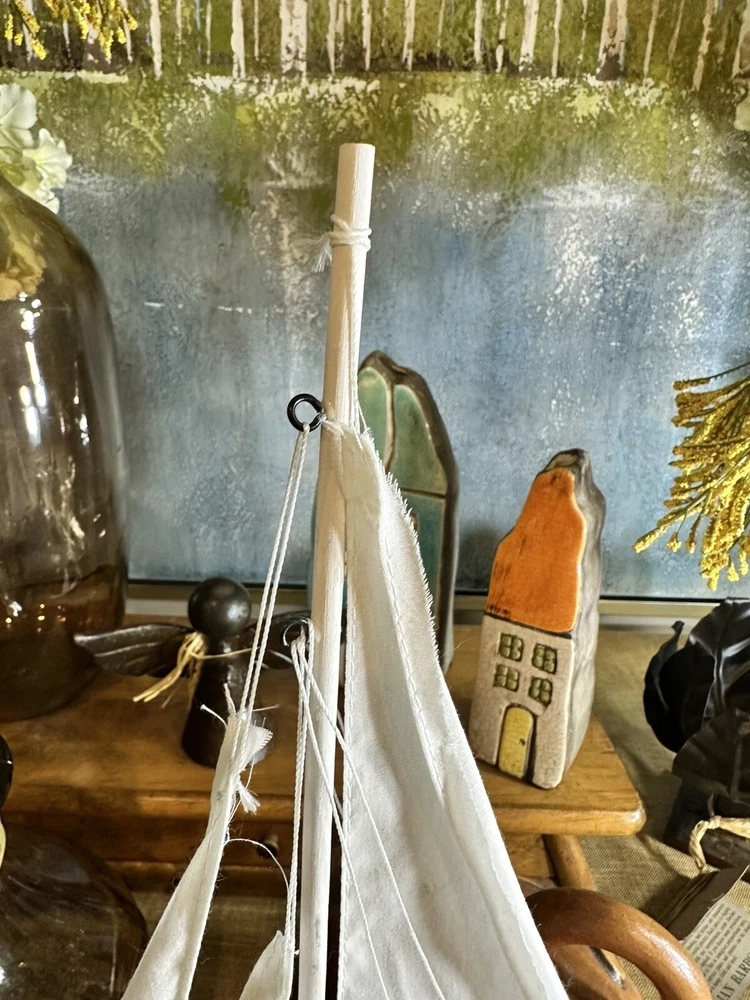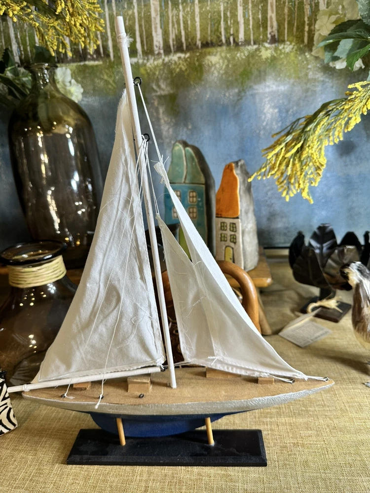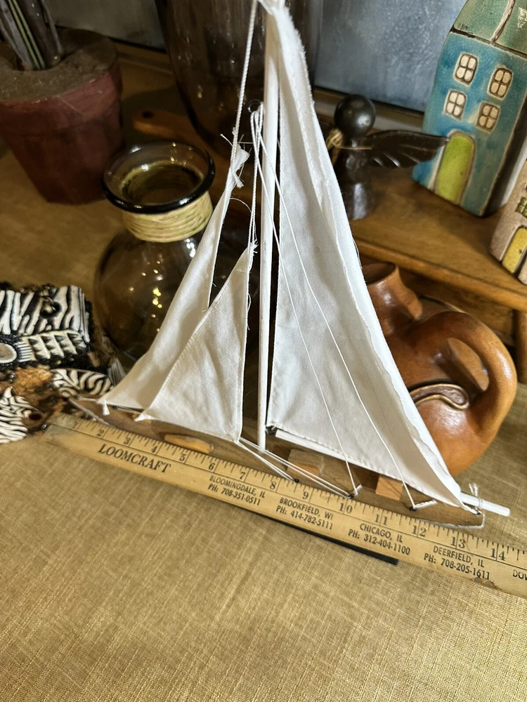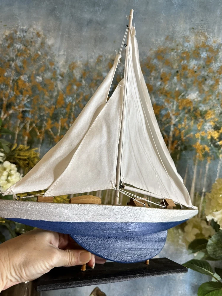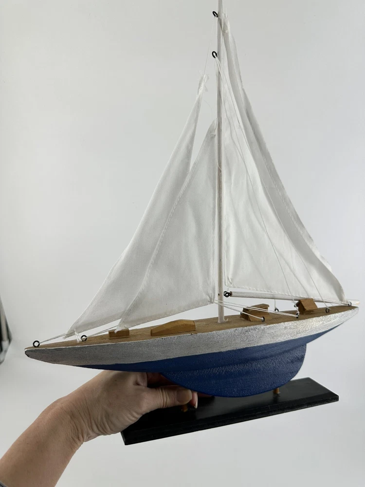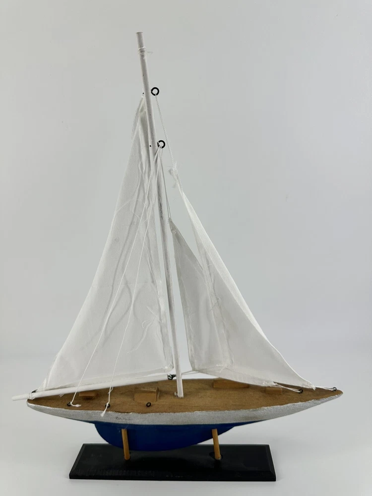 Elevate your space with a touch of maritime charm with our Wooden Sailing Ship Model. This beautifully crafted ornament boasts intricate details that capture the essence of a serene sea voyage. At 18 inches in height and 14 inches in width, it's the perfect size to make a statement on any room's wall or mantle, adding a nostalgic and decorative flair to your home or office. Crafted from synthetic material with a classic blue color scheme, this sailboat statue resonates with the spirit of nautical adventures. It is a vintage piece that does not require any additional parts and can be displayed in a vertical orientation without the need for batteries. Designed for everyone from kids to adults, this unbranded model is an ideal gift for various occasions, including birthdays and holidays, or simply as a thoughtful addition to your own collection. Good vintage condition. See all pictures. Thank you! You will receive the beautiful sailboat that is within the pictures. All other items are those items that I will be listing either this week or next week in my Ebay shop. ( YouBeYou LLC ) So, you will get a sneak peak of what is coming up next! :) If you have any questions even after you have purchased the item --- I am here for you to answer any questions that you may have! I strive to work diligently with every buyer to ensure they are a satisfied buyer, so please contact me anytime. This is a pre-owned item and I take great care to accurately describe the item but please see the pictures for full details. While we do our best to list every item in detail, these are vintage and pre-owned items, and some flaws are to be expected. Please see all photos/ video as they are a large part of the description of our items. Items come from a smoke-free environment. Each item is described in accurate detail with multiple measurements and various photos at different angles front and back, side to side, top and bottom. I have additional similar items that I have yet to list that you may be interested in. Feel free to follow my store ( YouBeYou LLC ) to see those when posted. Please see all photos/ video as they are a large part of the description of our items. I strive to make every purchase a pleasant experience. Please feel confidence in you purchase that I'll make every effort to correct any issues that may arise. If used, there are always some signs of wear -- well, because it is used, vintage, or antique. Most items are used -- Each item is inspected for quality. It is very important to us that you have a happy Ebay experience! Thank you for supporting a small business like ours! (Note: pictures may include measurements, and some have a video.)