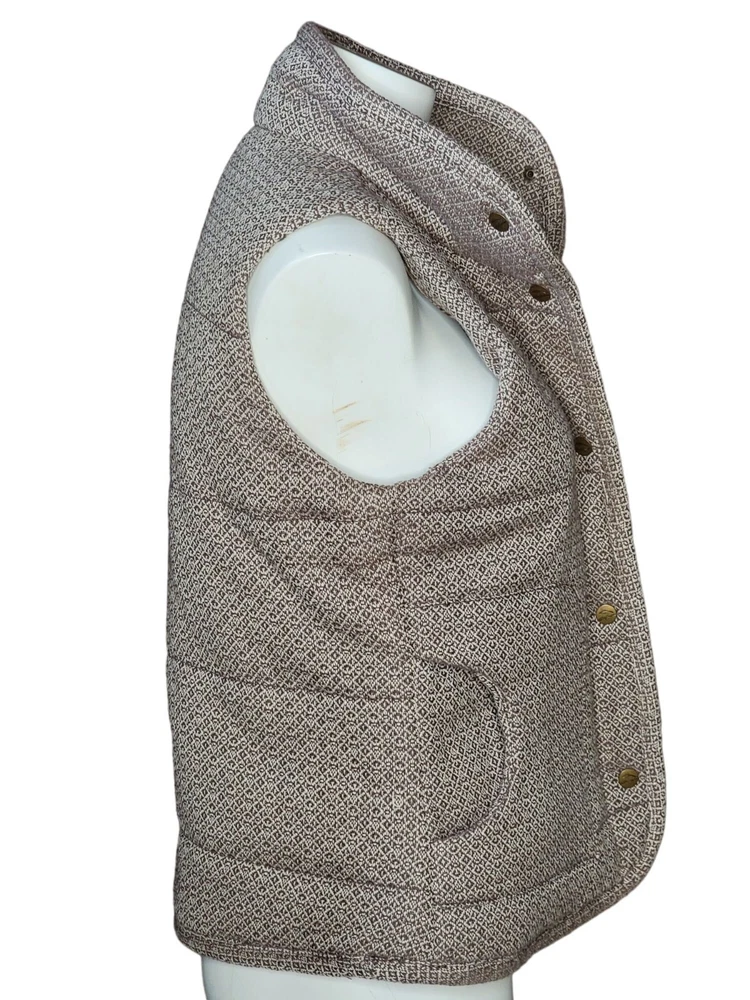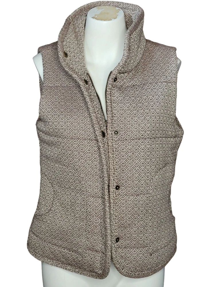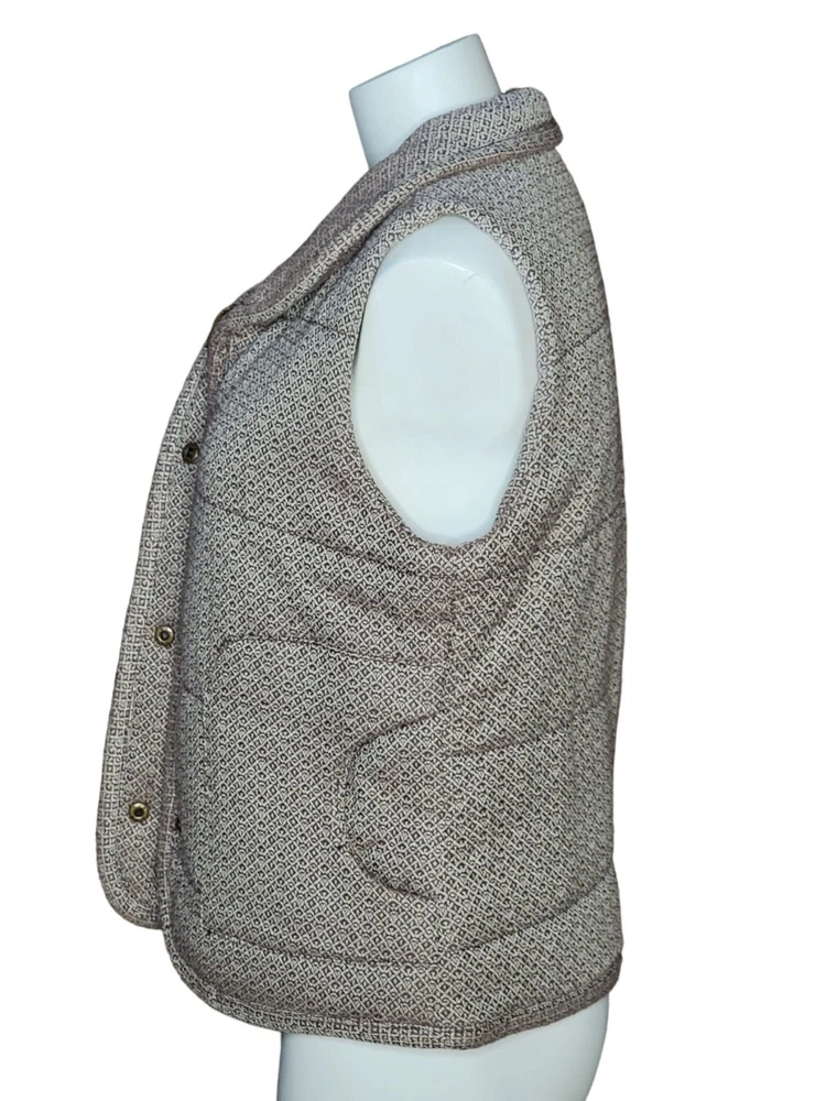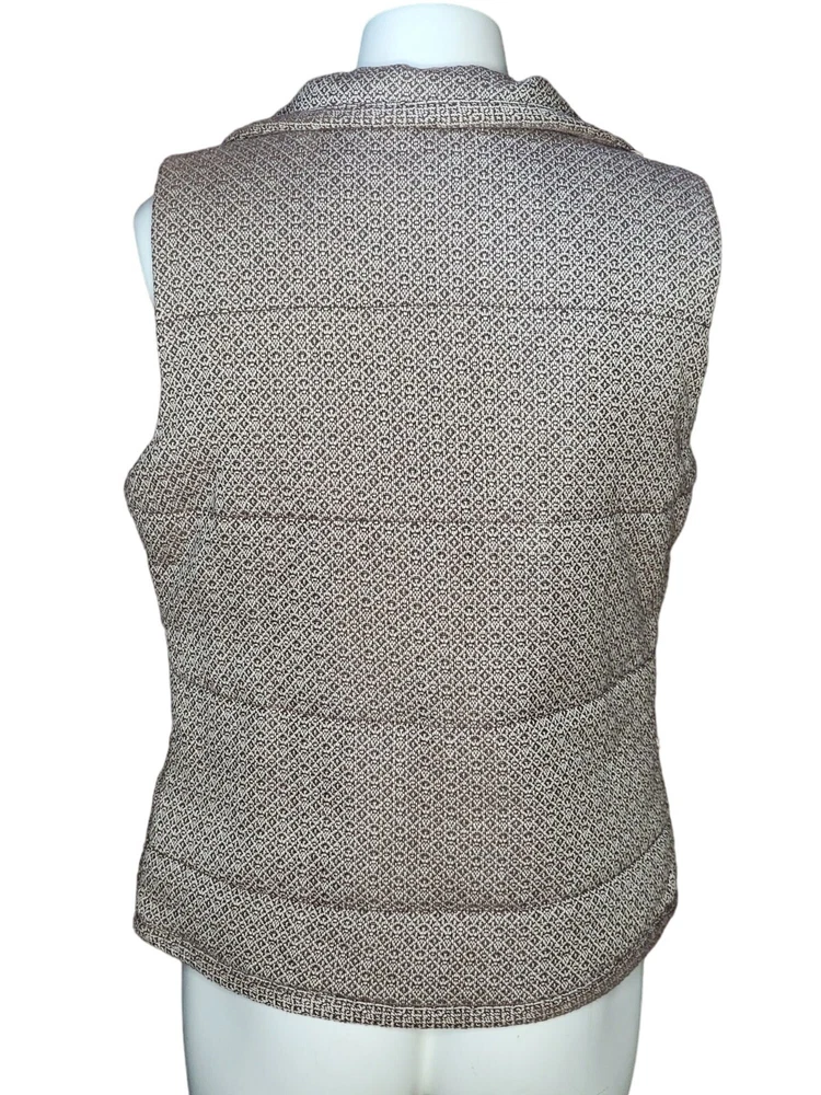 Bob Timberlake Womens Quilted Vest Med Brown Beige Lined Full Zip Snap Front
