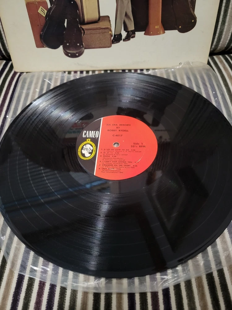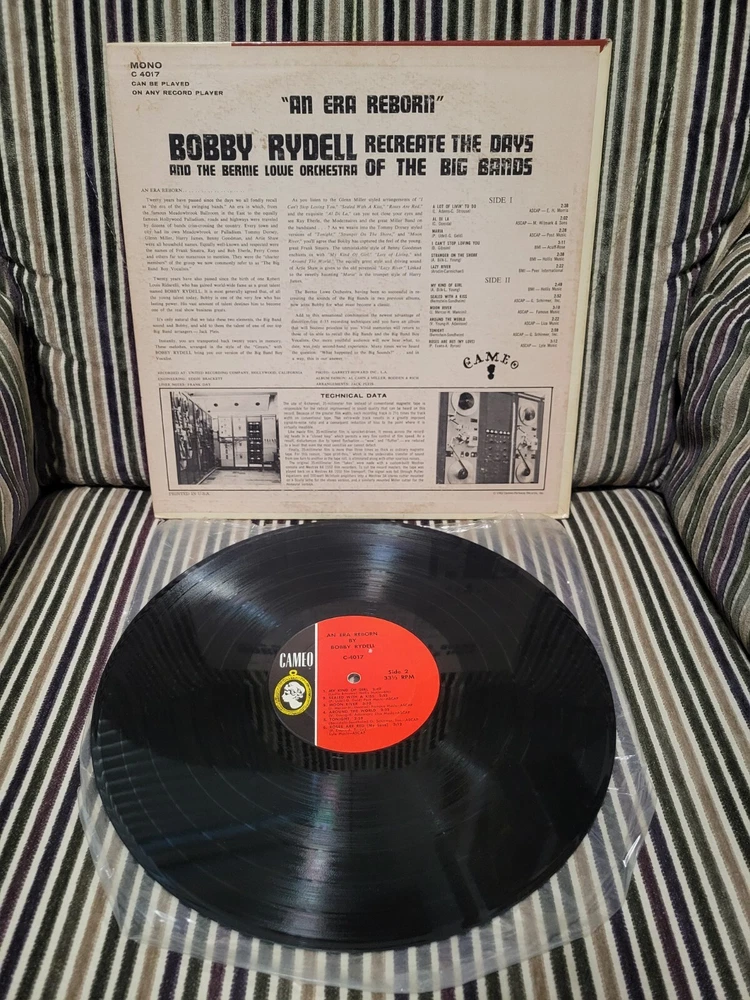 Language: English Release Title: An Era Reborn Features: Original Cover Fidelity Level: High-Fidelity Material: Vinyl Number of Audio Channels: 4 channels on 35MMF Genre: Pop, Rock, R&B & Soul Inlay Condition: Excellent (EX) Color: Black Sleeve Grading: Excellent (EX) Record Label: Cameo Records Record Size: 12" Record Grading: Very Good Plus (VG+) Format: Record Type: LP Artist: Bobby Rydell Country/Region of Manufacture: United States Release Year: 1962 Case Type: Cardboard Sleeve Style: Singer-Songwriter, 1960s, Classic R&B Edition: First Edition Speed: 33 RPM Era: 1960s
