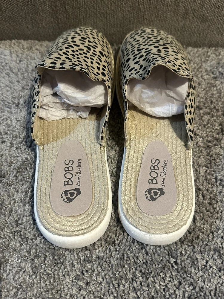 Elevate your casual style with these Bobs by Skechers slip-on mules. The leopard print fabric upper is accented with a multicolor pattern, adding a playful touch to your wardrobe. The flat heel and rubber outsole provide comfort and durability, making them perfect for everyday wear. These mules are designed with a slip-on closure for easy wear and are available in UK shoe size 6, US shoe size 9, and EU shoe size 39. The fabric lining and insole provide additional comfort, while the brand's reputation for quality ensures longevity. Perfect for women who want to add a touch of style to their comfort shoes collection.